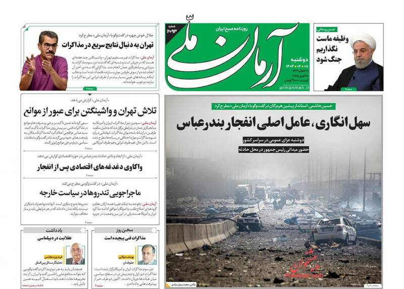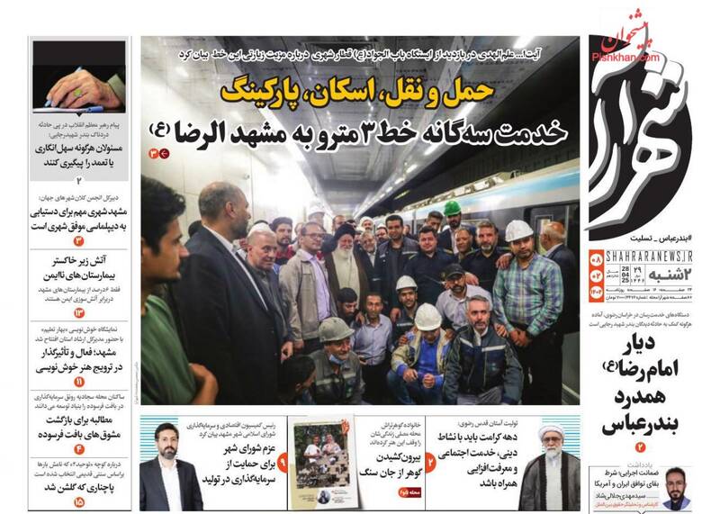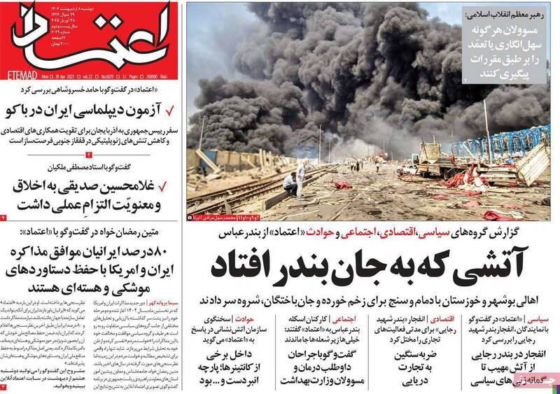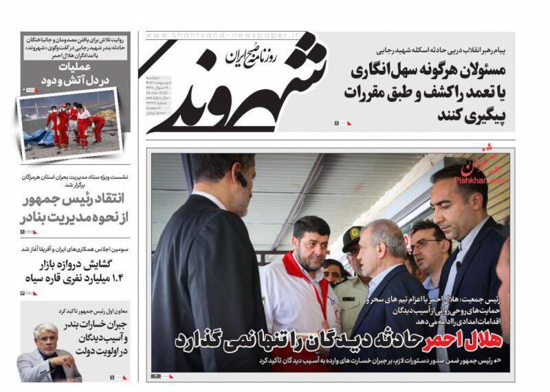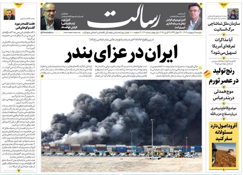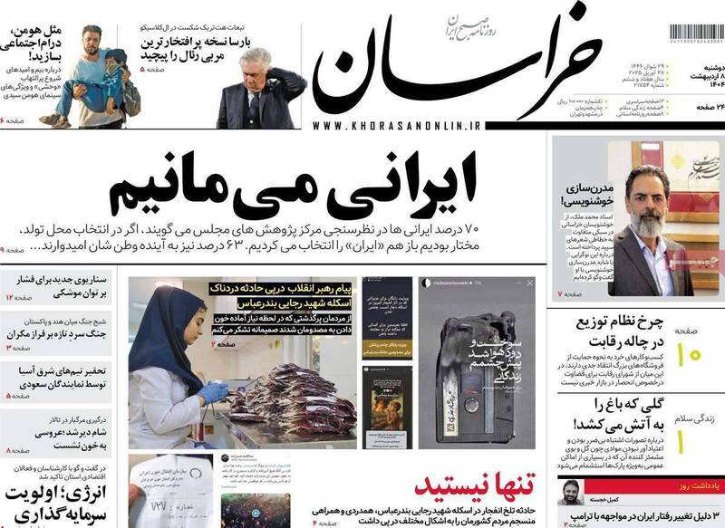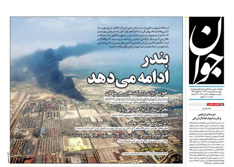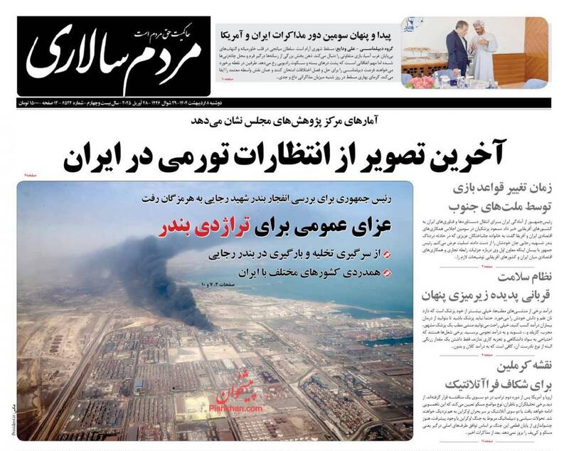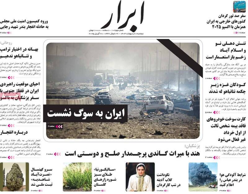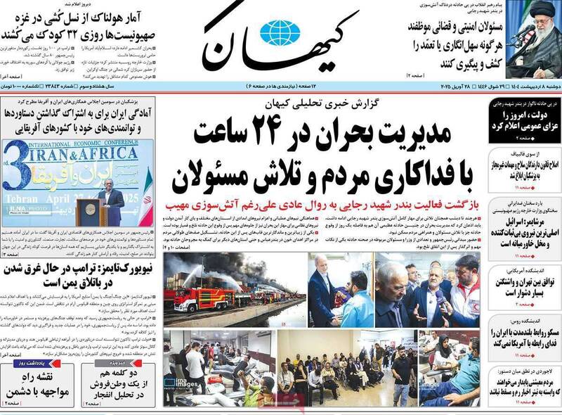 مدیریت بحران در ۲۴ ساعت با فداکاری مردم و تلاش مسئولان، بندر ادامه میدهد، بارانداز شایعه، آتش همدلی گرمتر بود، ایرانی میمانیم و…از جمله تیترهای روزنامههای دوشنبه ۸ اردیبهشت ۱۴۰۴ هستند.