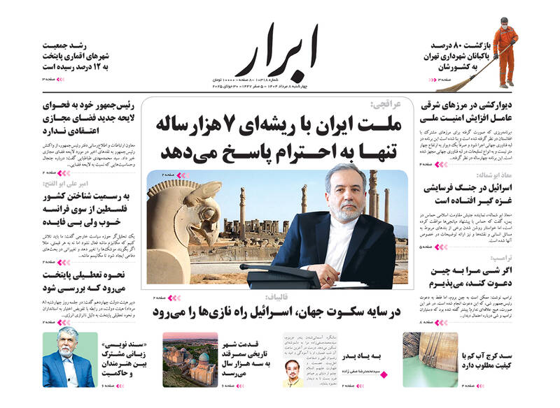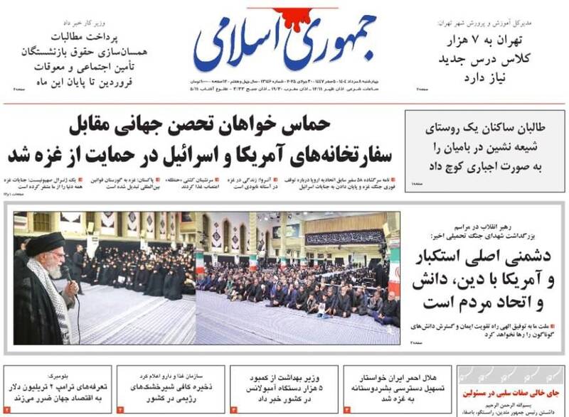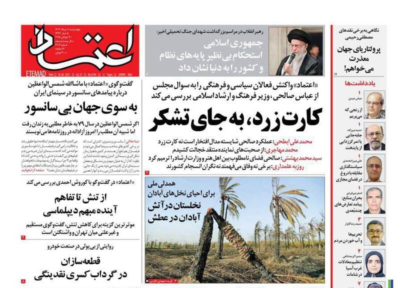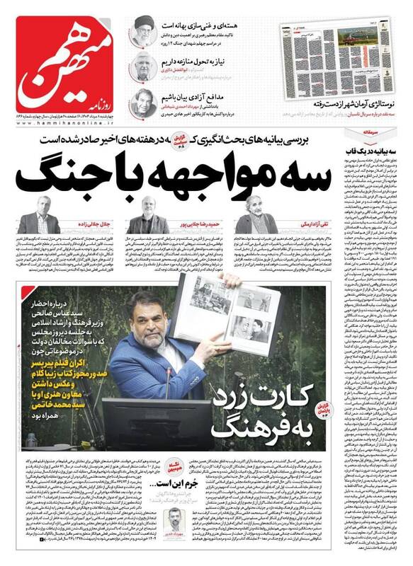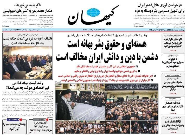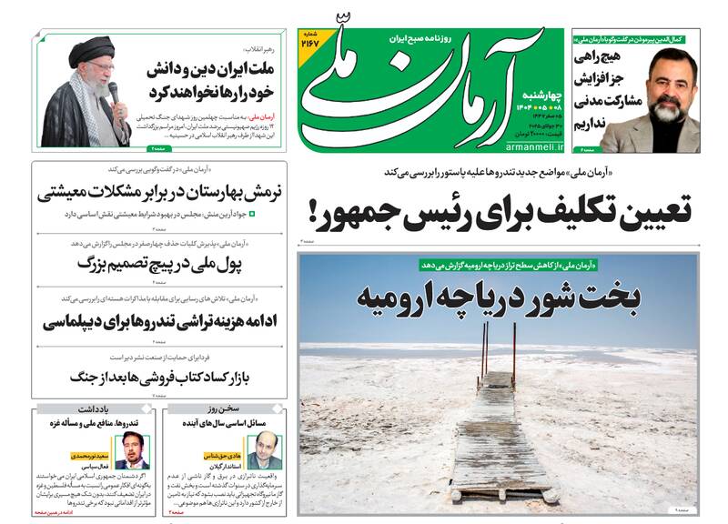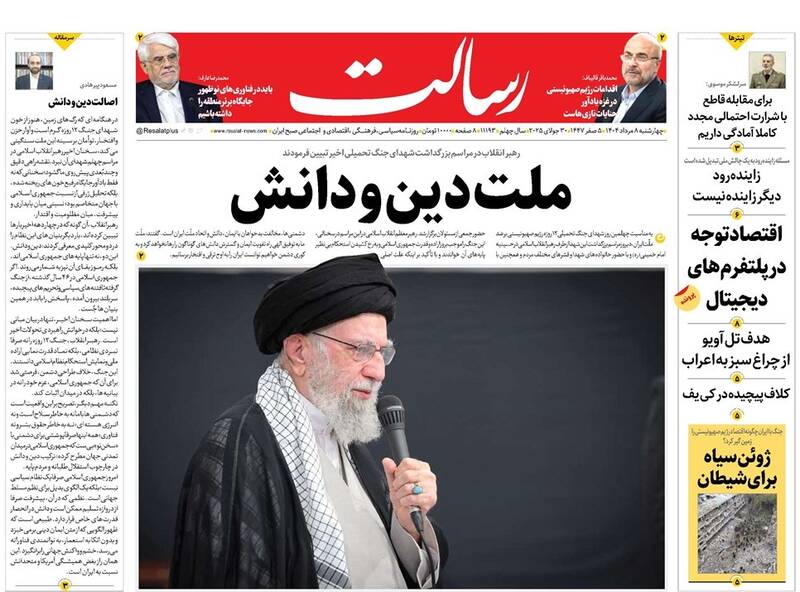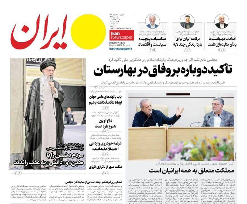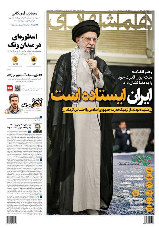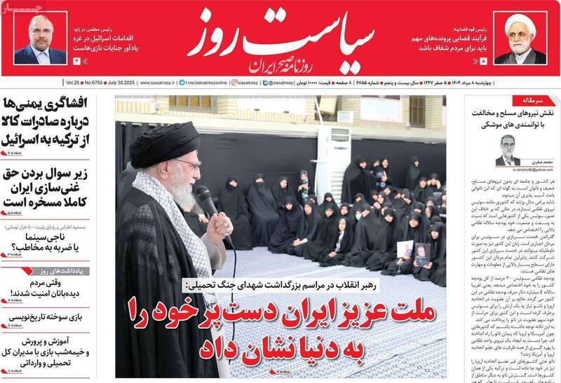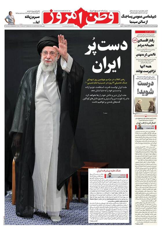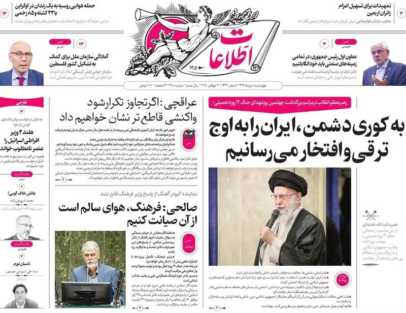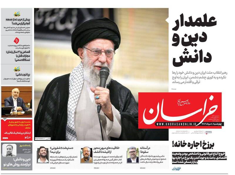 هستهای و حقوق بشر بهانه است دشمن با دین و دانش ایران مخالف است، آقا ایستاده ایران ایستاده، سر خم می سلامت، علمدار دین و دانش، دست پر ایران و…از جمله تیترهای روزنامههای چهارشنبه ۸ مرداد هستند.