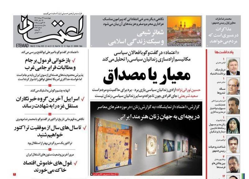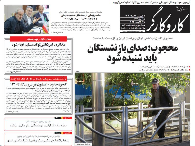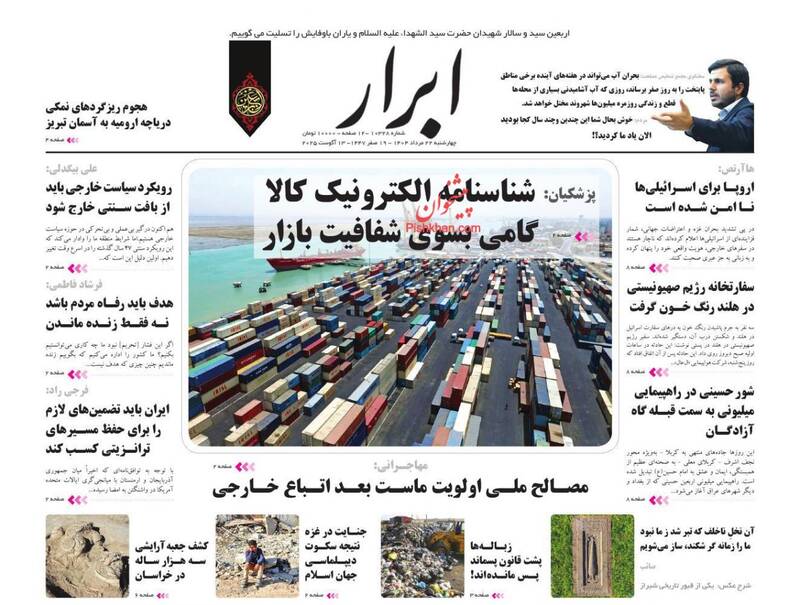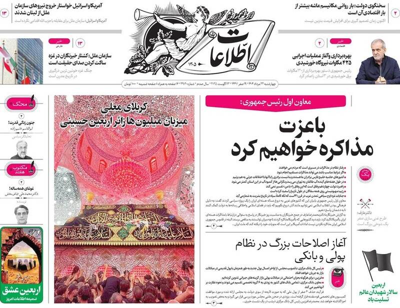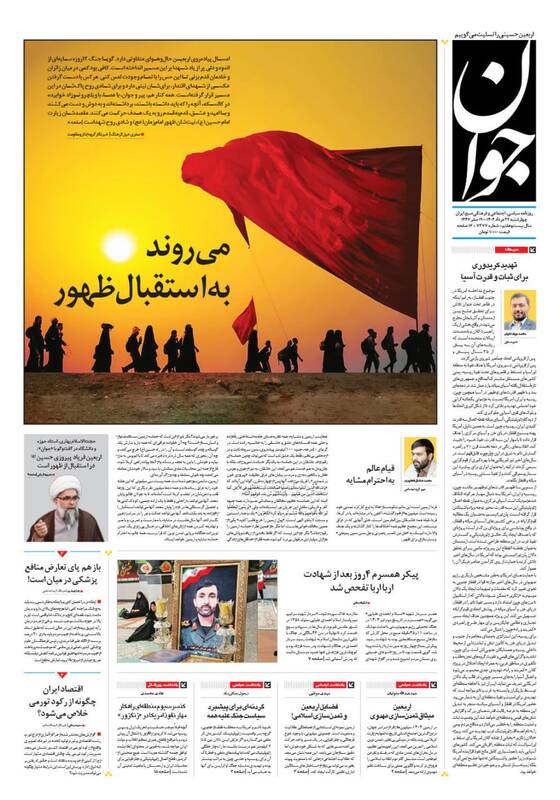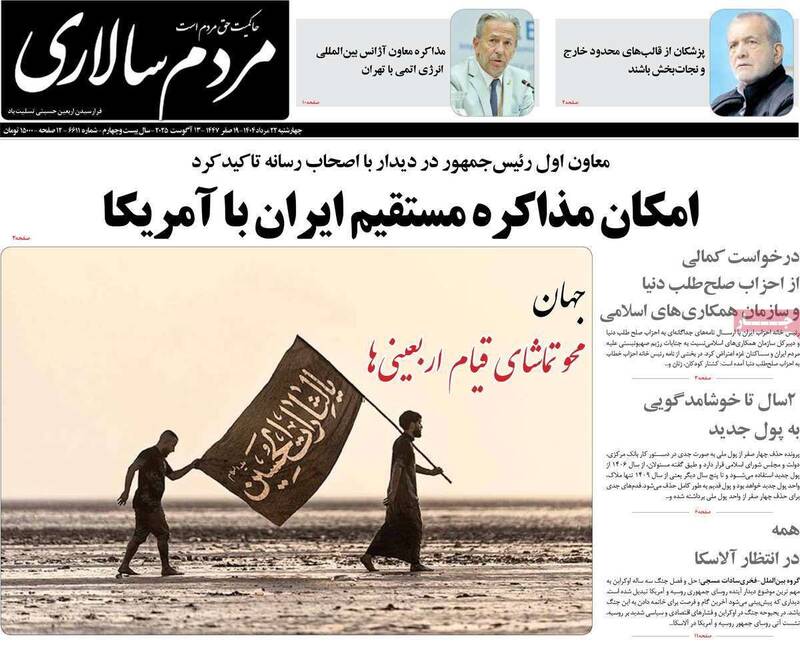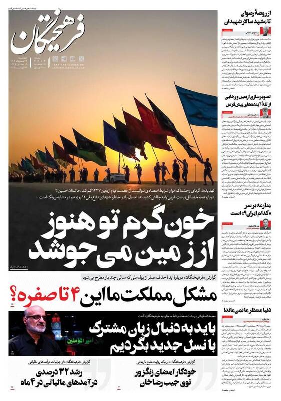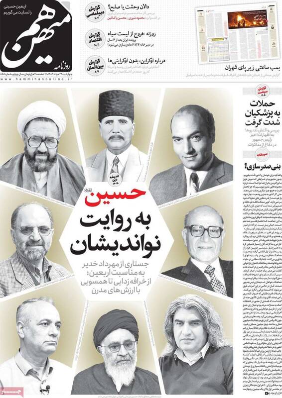 تجلی مقاومت حسینی در رزمایش چند ده میلیونی اربعین، مسیر مقاومت، در پناه اربعین، شکرا جزیلا، خدمت ملی با دست خالی و…از جمله تیترهای روزنامههای چهارشنبه ۲۲ مرداد هستند.