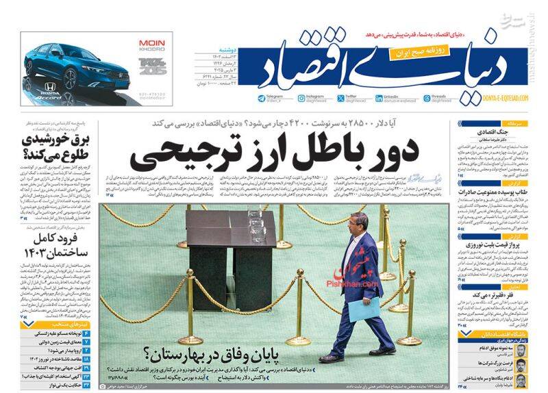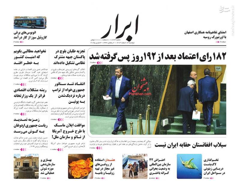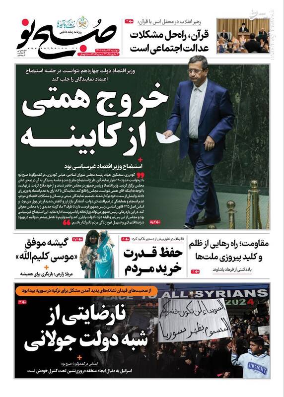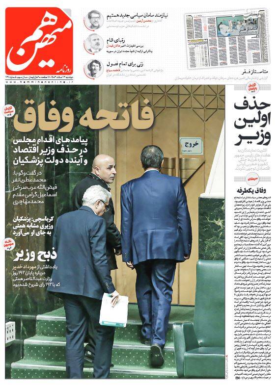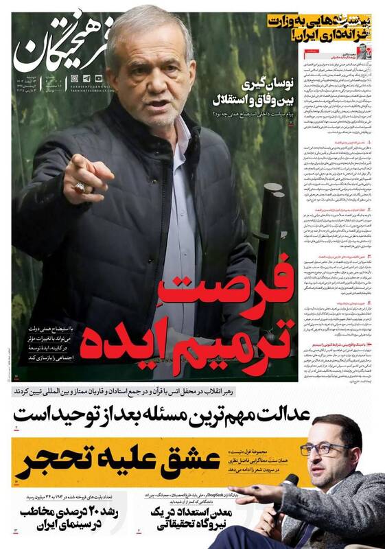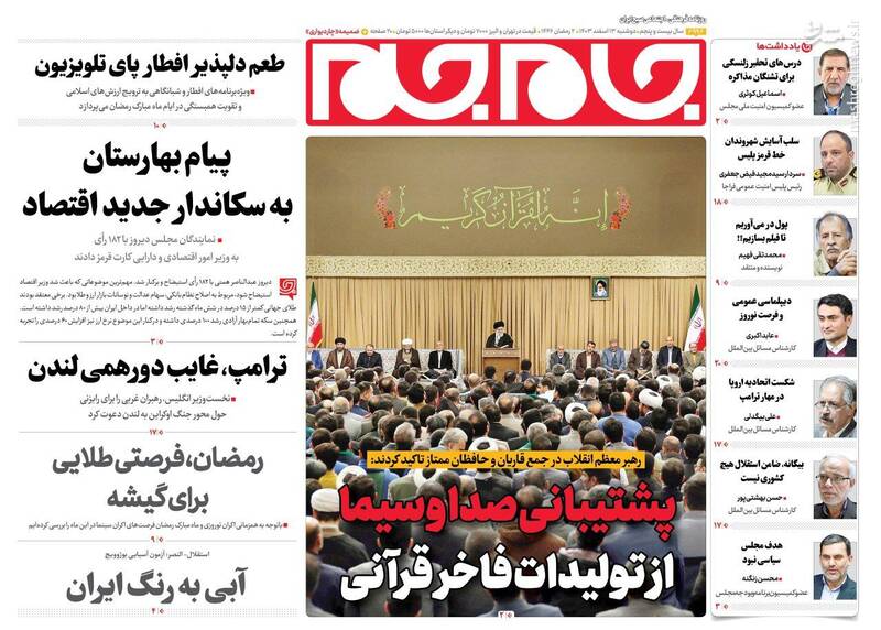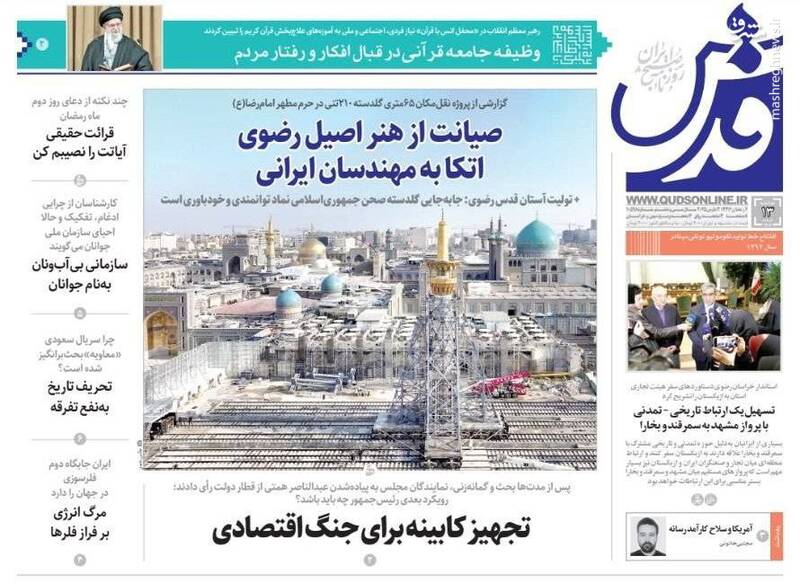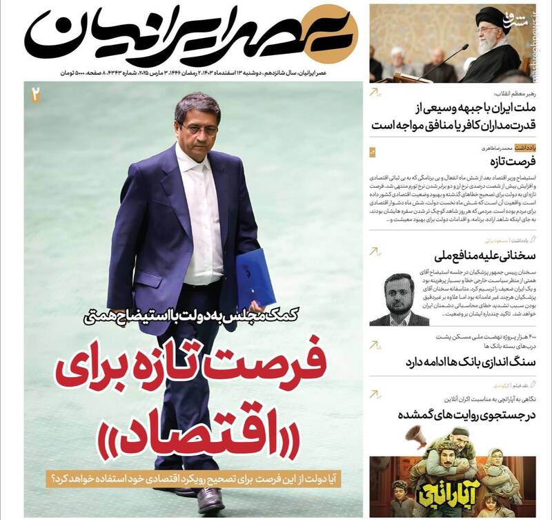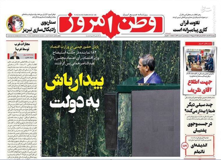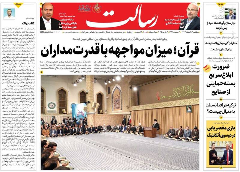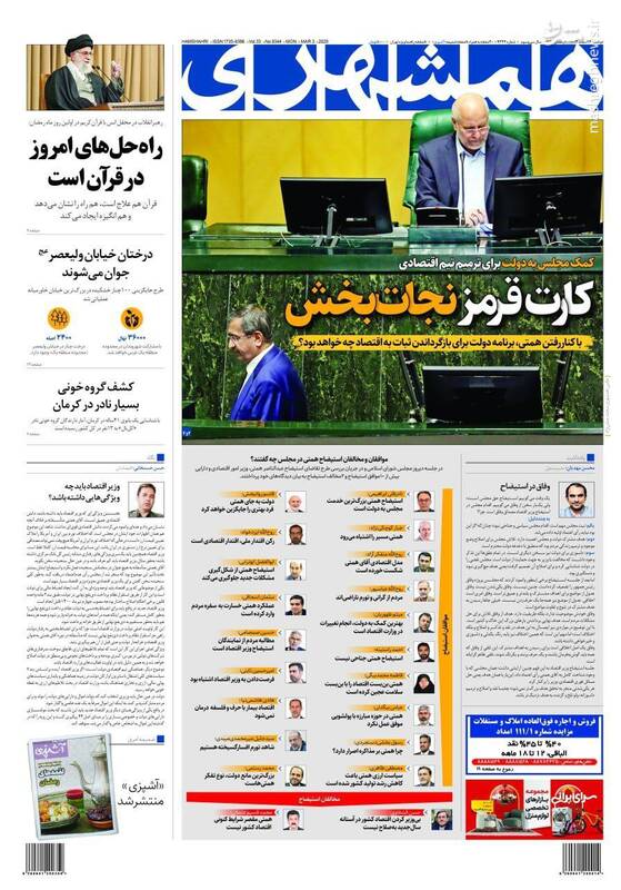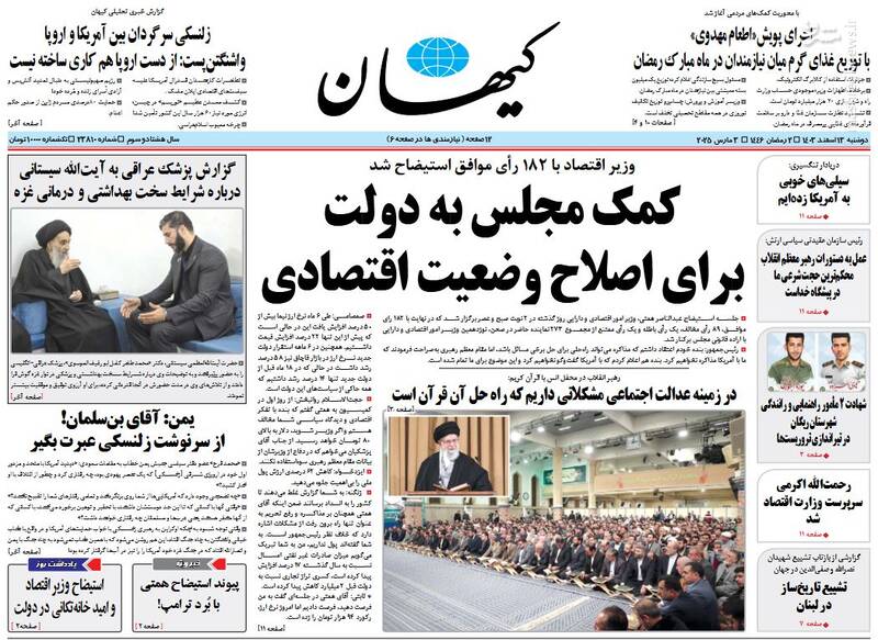 کمک مجلس به دولت برای اصلاح وضعیت اقتصادی، بهت اروپا در پیچ تاریخی، صیانت از هنر اصیل رضوی اتکا به مهندسان ایرانی، تلاوت قران کاری پیامبرانه است، از جمله تیترهای روزنامه‌های دوشنبه ۱۳ اسفند هستند.