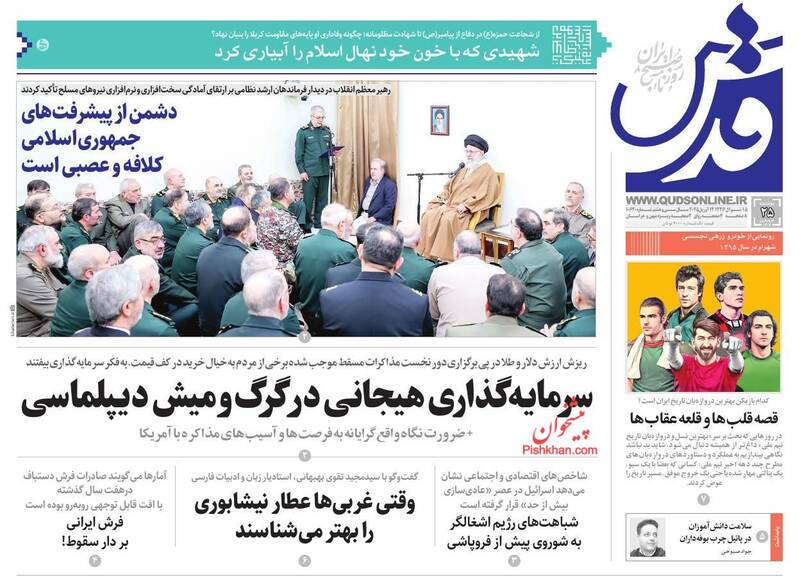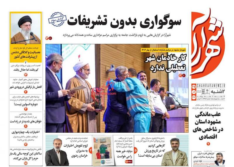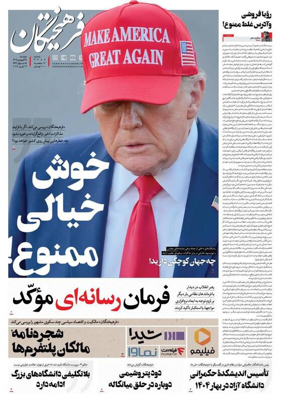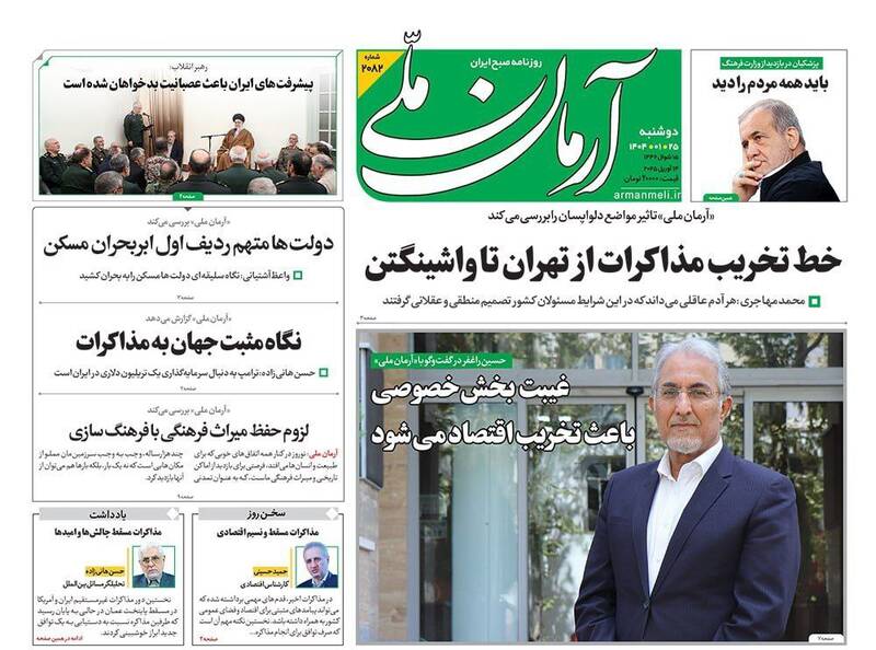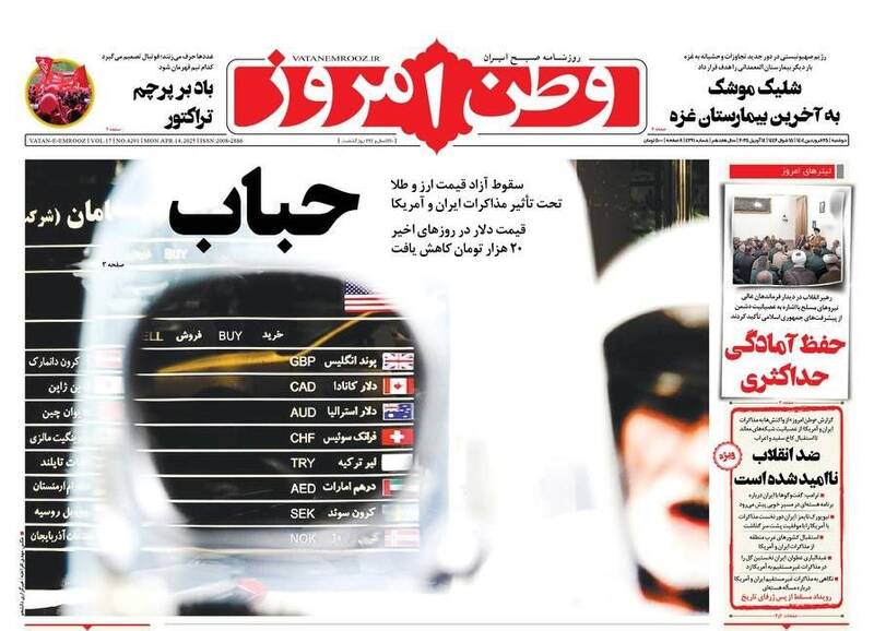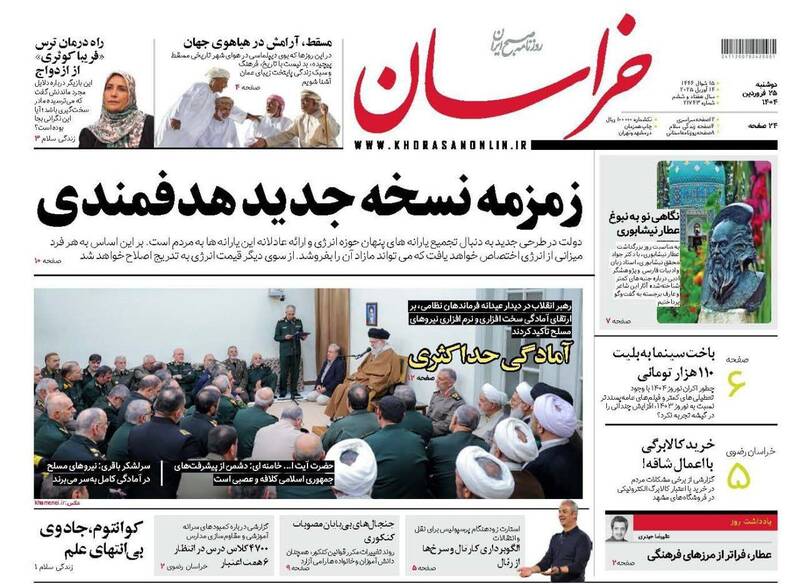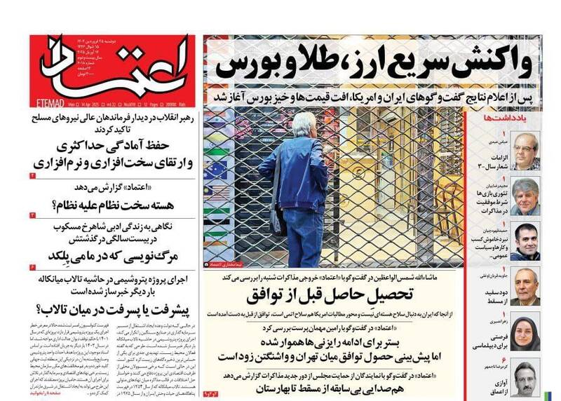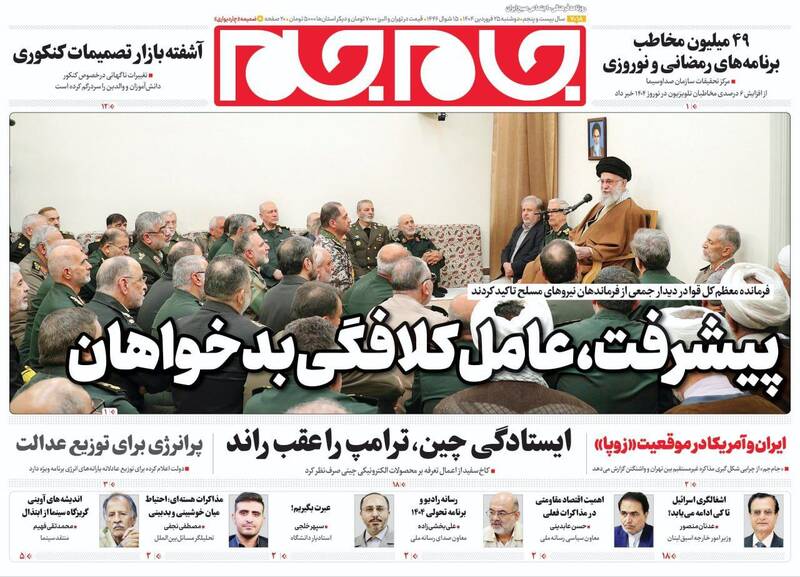 پیشرفتهای جمهوری اسلامی دشمن را کلافه و عصبانی کرده است، آمادگیها و مراقبتها را ارتقا دهید،خوش خیالی ممنوع، روایت موافقان مذاکره، حباب و… از جمله تیترهای روزنامههای دوشنبه ۲۵ فروردین ۱۴۰۴ هستند.