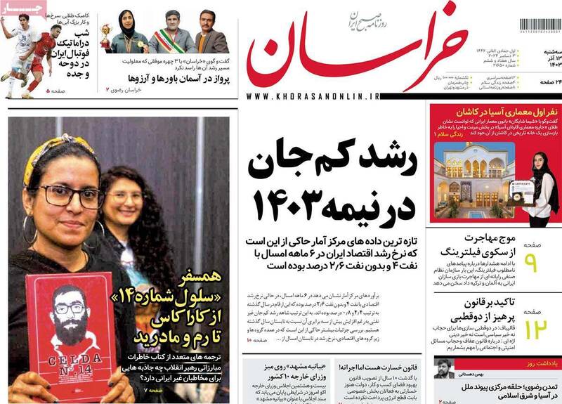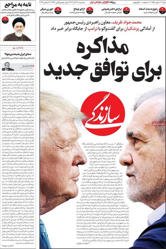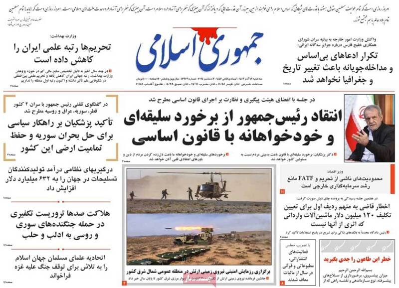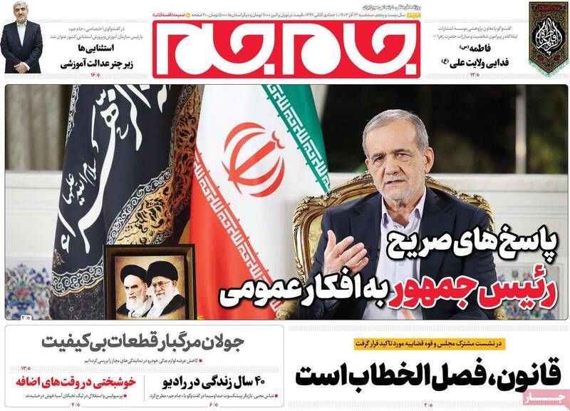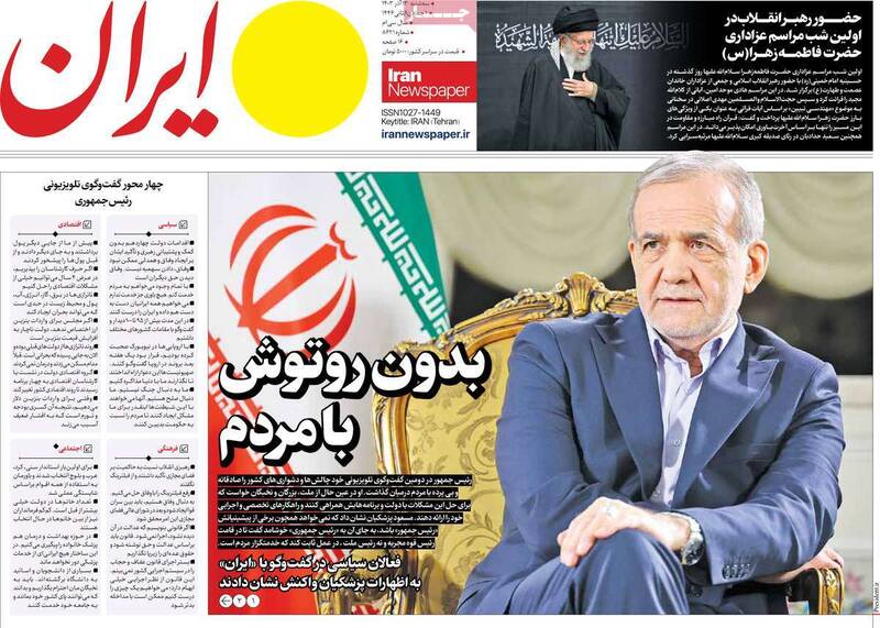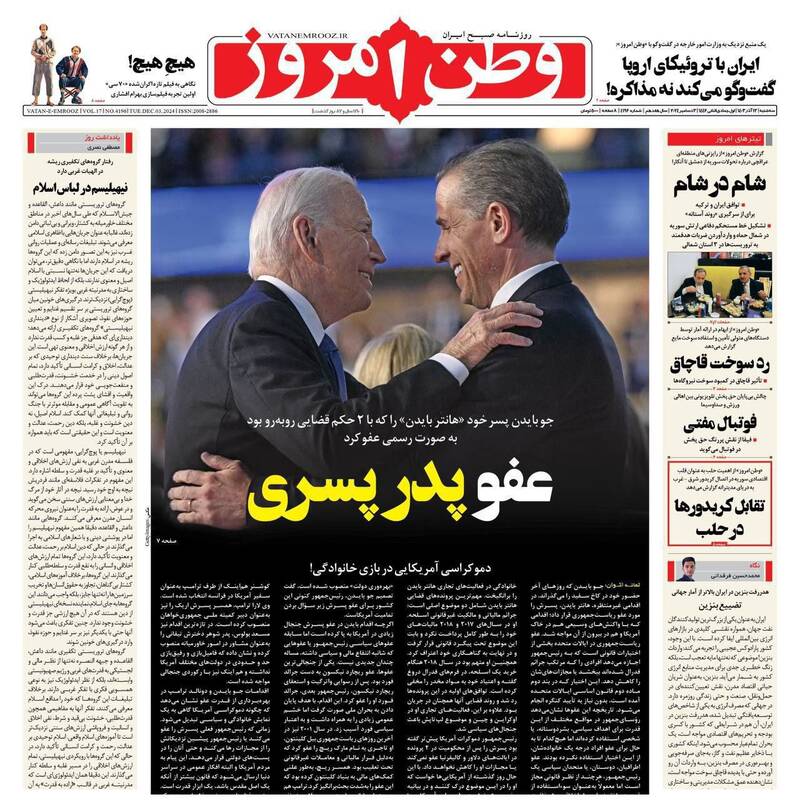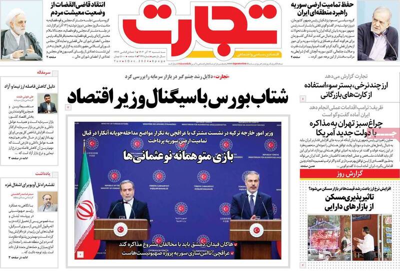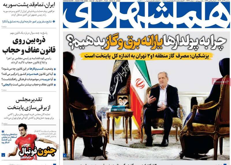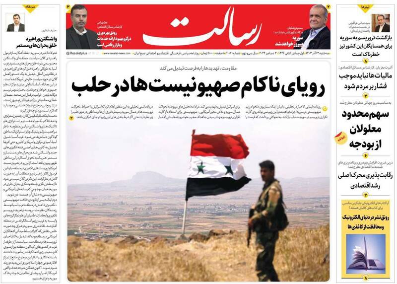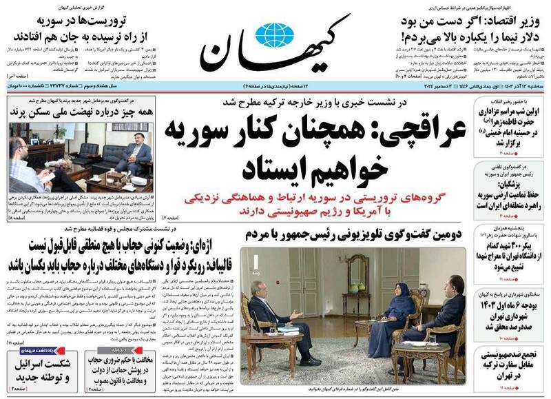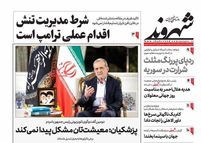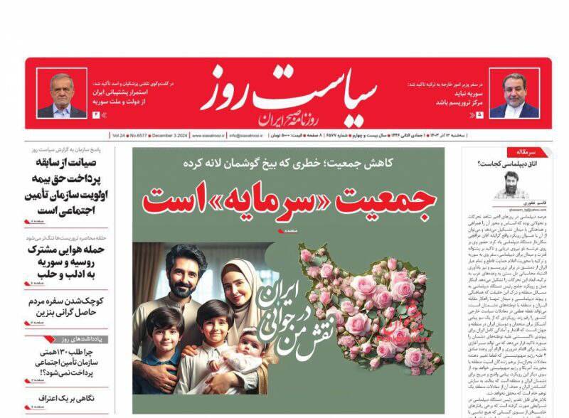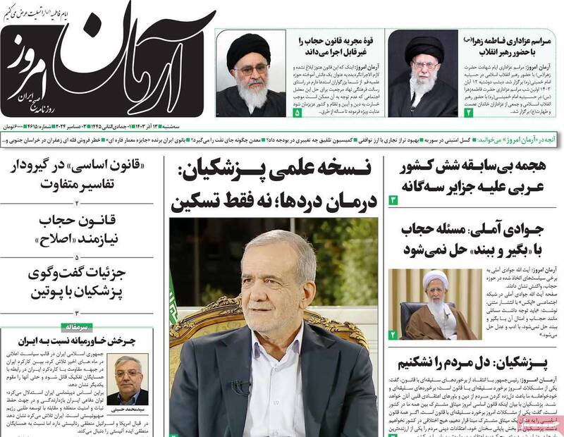 عراقچی: همچنان در کنار سوریه خواهیم ایستاد، بدون روتوش با مردم، پاسخهای صریح رئیس جمهور به افکار عمومی، روی سیاه سیاسی کاری و … تیتر برخی از روزنامههای سهشنبه ۱۳ آذر ۱۴۰۳ است.