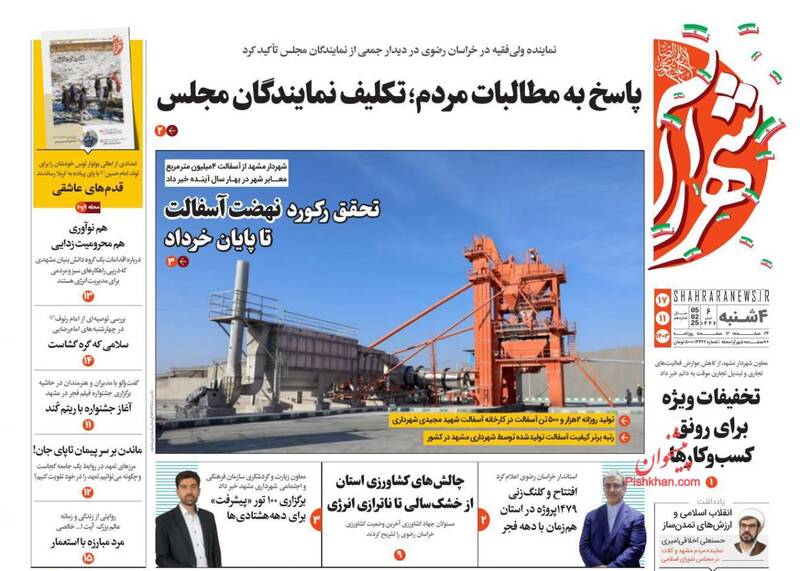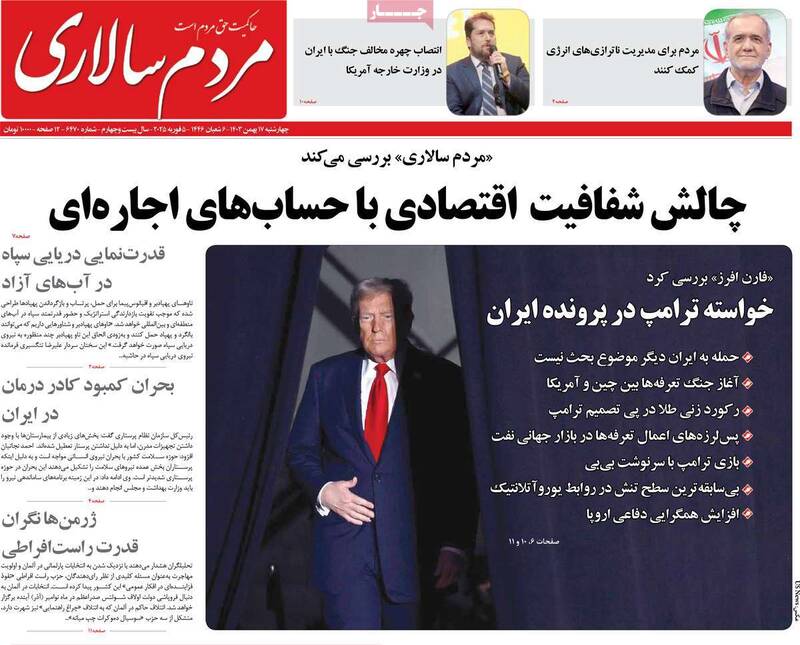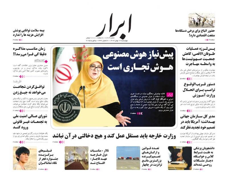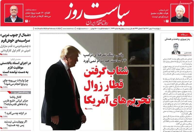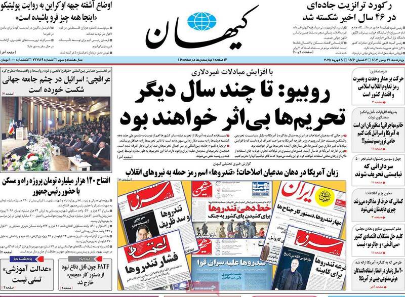 روبیو: تا چند سال دیگر تحریمها بی اثر خواهد بود، دولت دارد چکار میکند؟، جراحی در جاده مخصوص، راه موسی، گسترش تجارت خارجی ایران و… از جمله تیترهای روزنامههای چهارشنبه ۱۷ بهمن ۱۴۰۳ هستند.