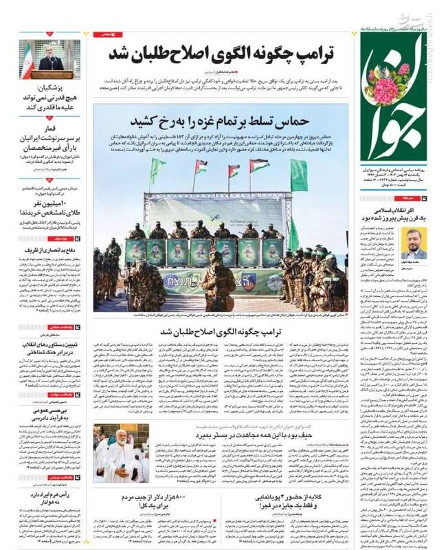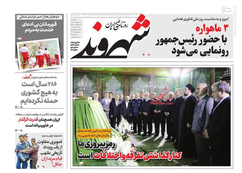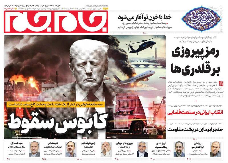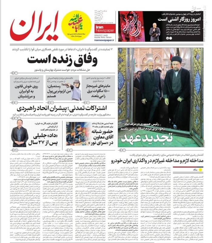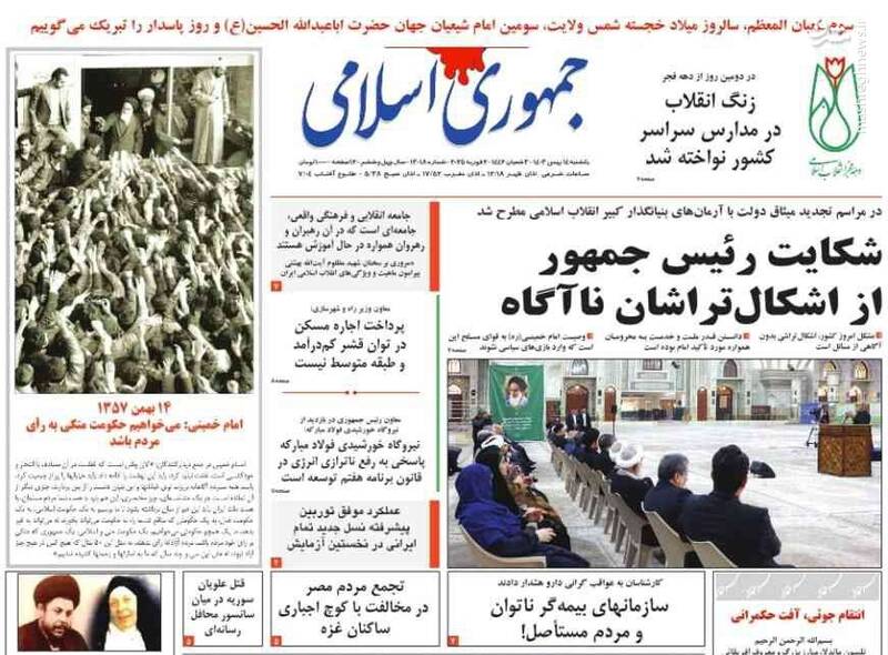 ۱۲ دستاورد بزرگ انقلاب در حوزههای زیرساختی و خدمات عمومی، حماس تسلط بر تمام غزه را به رخ کشید، روح خدا حماسهترین شعر قرن ما، از جمله تیترهای روزنامههای یکشنبه ۱۴ بهمن ۱۴۰۳ هستند