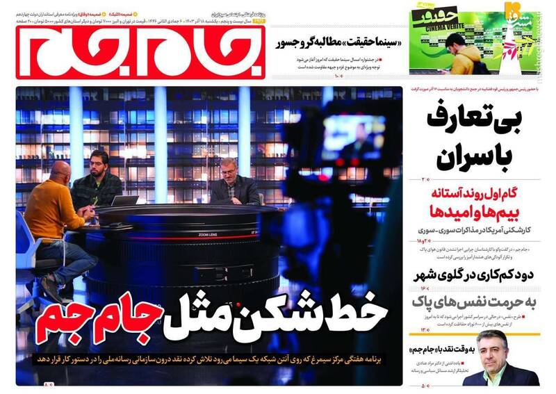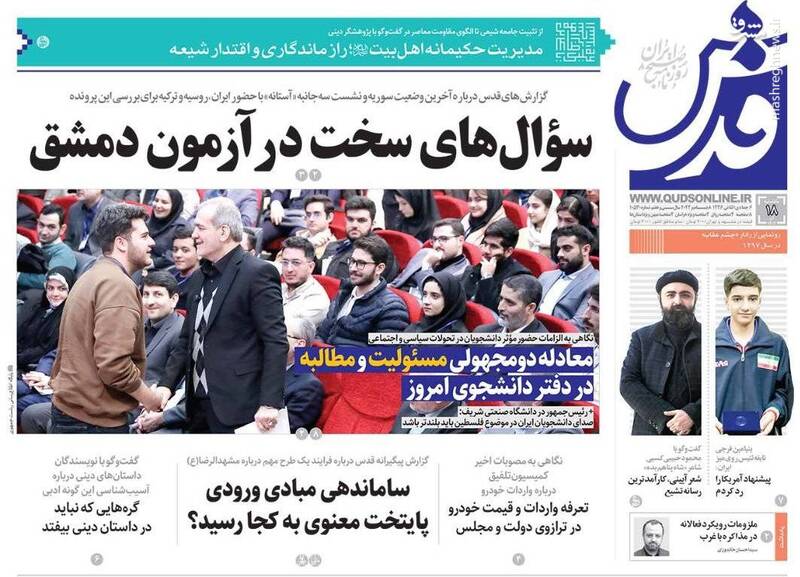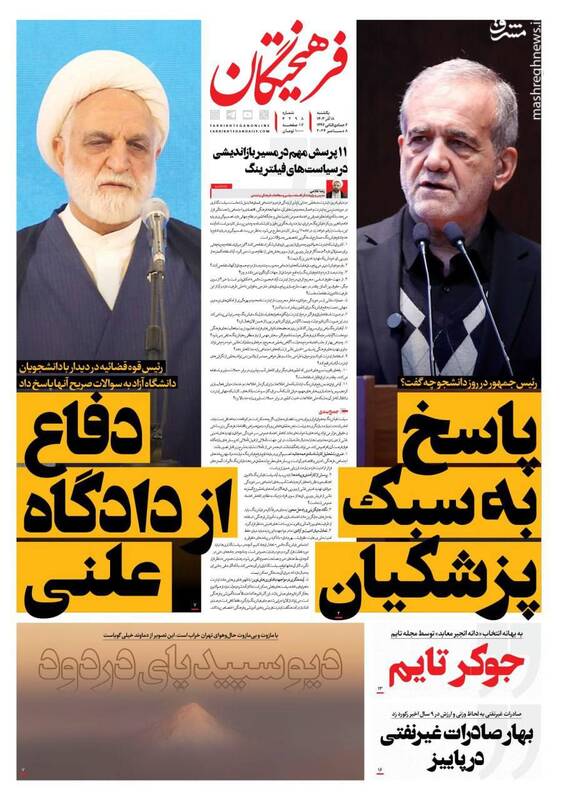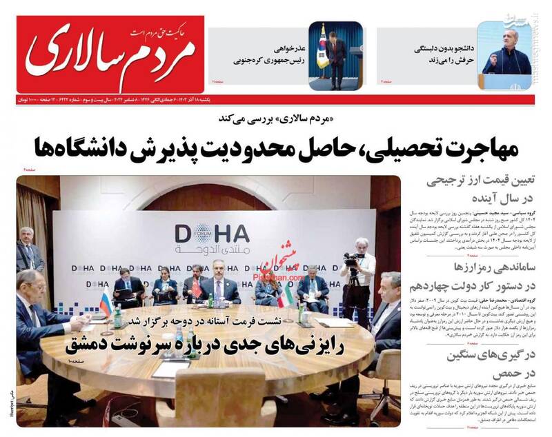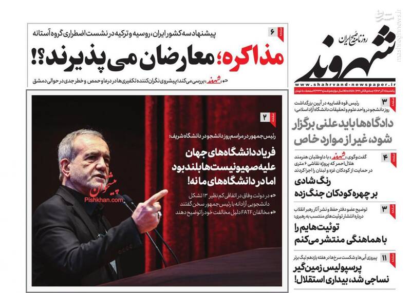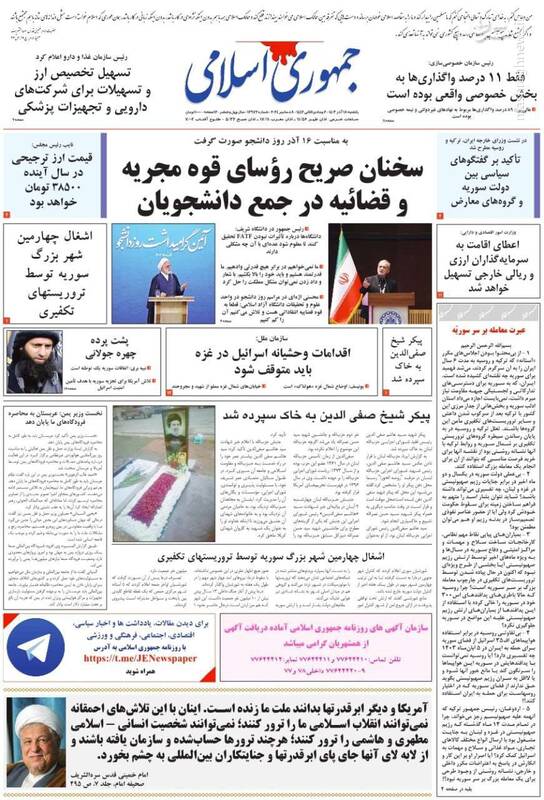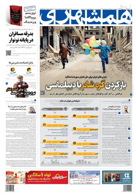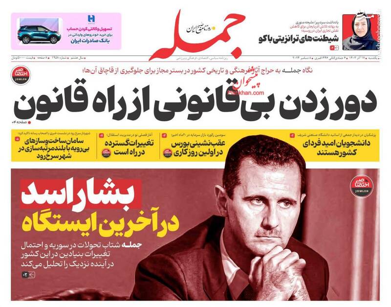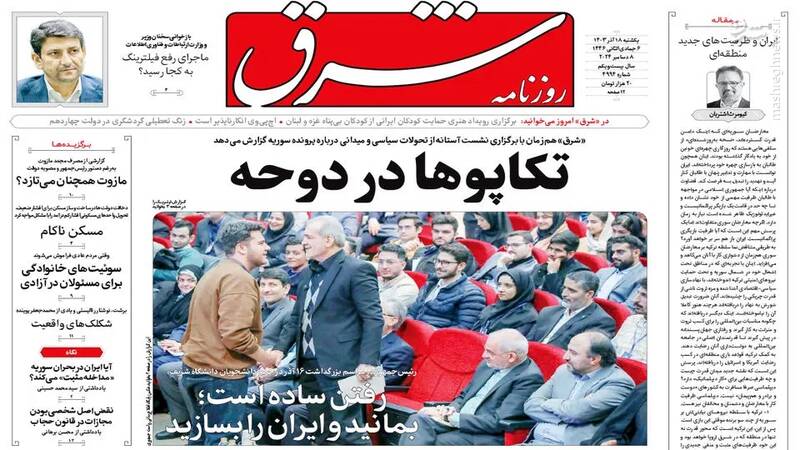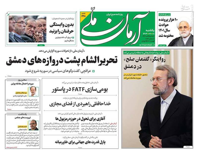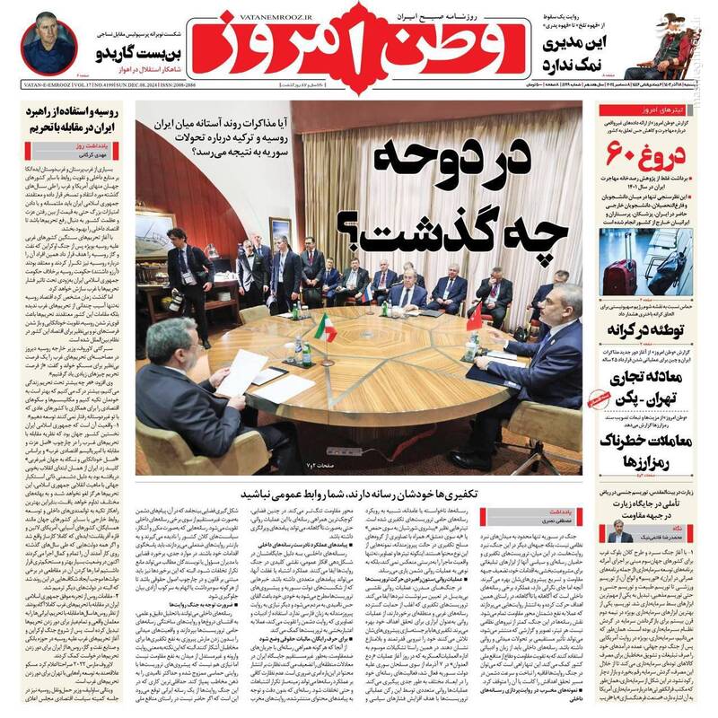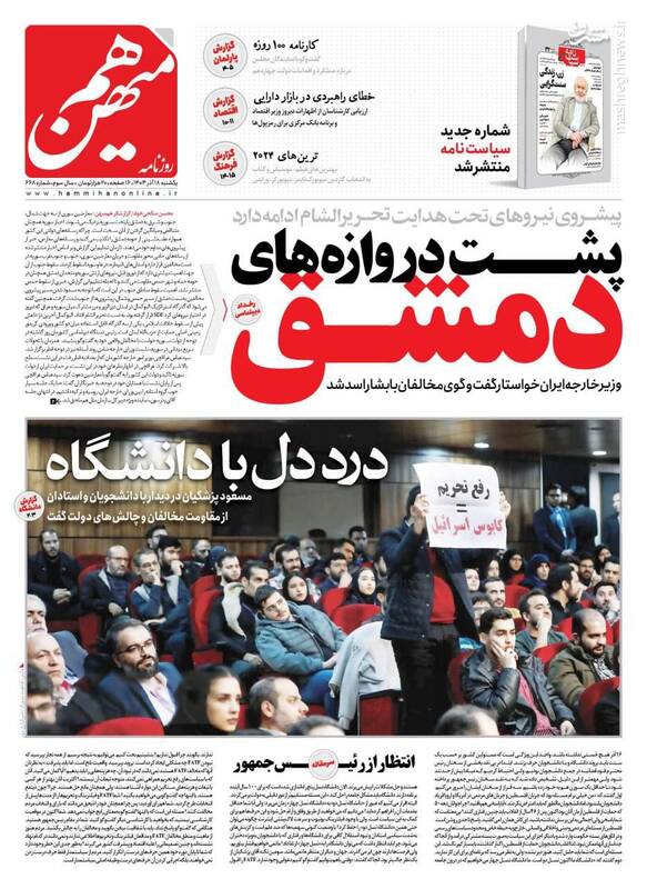 خواسته تروریستهای سوریه با خواستههای «اسرائیل» مو نمیزند، آغاز «نمیگذارند»های پزشکیان، سوالهای سخت در آزمون دمشق، تیتر برخی از روزنامههای یکشنبه ۱۸ آذر ۱۴۰۳ است.