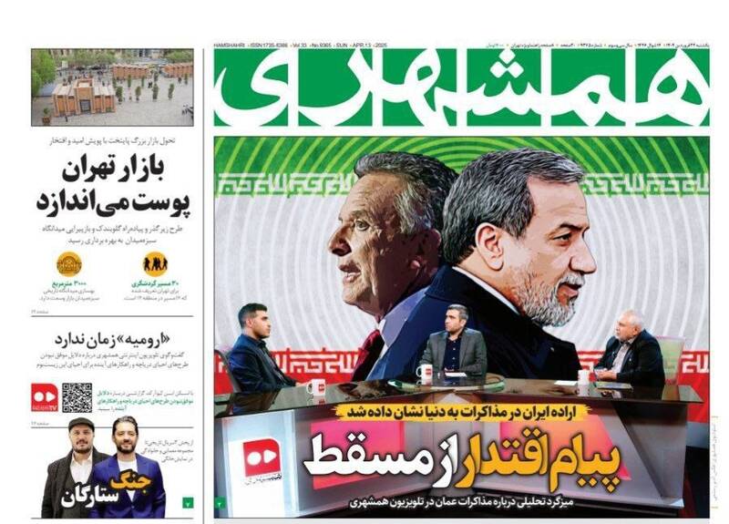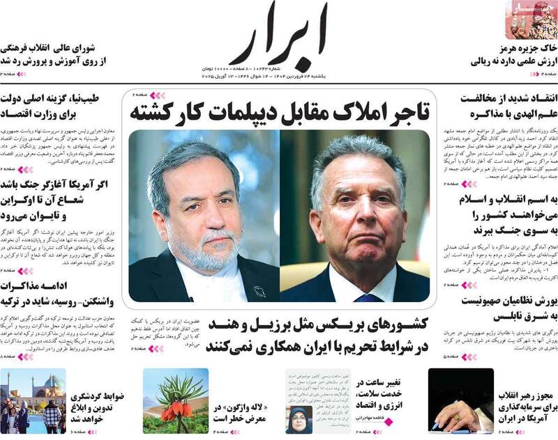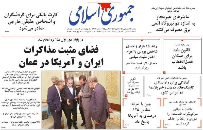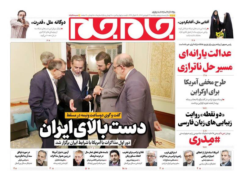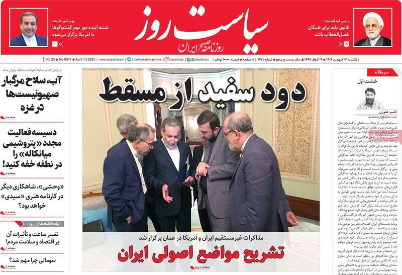 افق توافق با ترامپ روشن نیست کشور را معطل نکنید، مذاکرات غیر مستقیم دیدار مستقیم، شنبه‌ها در مسقط، شروع حساب شده، دست بالای ایران و… از جمله تیترهای روزنامه‌های یکشنبه ۲۴ فروردین ۱۴۰۴ هستند.