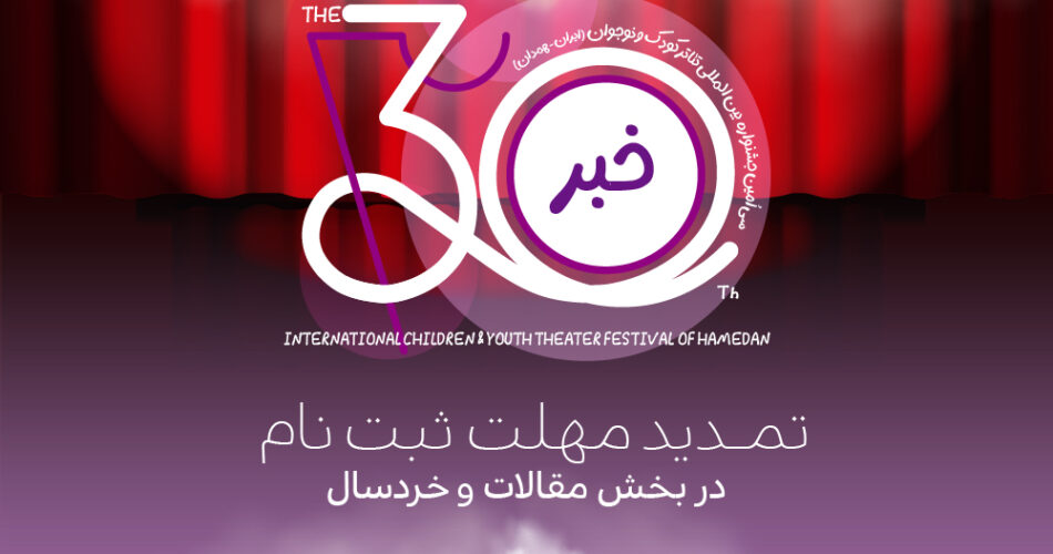 به گزارش شهر تی وی به نقل از ستاد خبری، مهلت بارگذاری طرح و پیشنهاد پژوهشی در بخش «خردسال» و پایان مهلت بارگذاری چکیده مقالات بخش «مقالات پژوهشی» سیامین جشنواره بینالمللی تئاتر کودک و نوجوان همدان که پیشتر بهترتیب تا ۳۱ شهریورماه و اول مهرماه تعیین شده بود، بنا به استقبال و درخواستهای متعدد تا ۱۲ مهرماه تمدید شد.