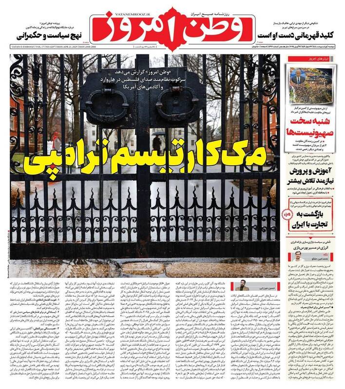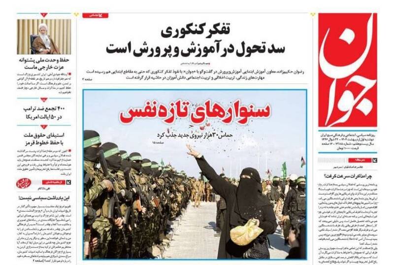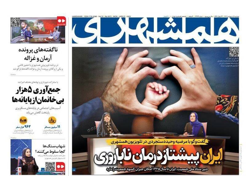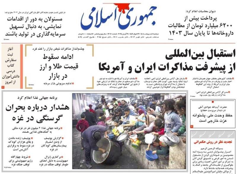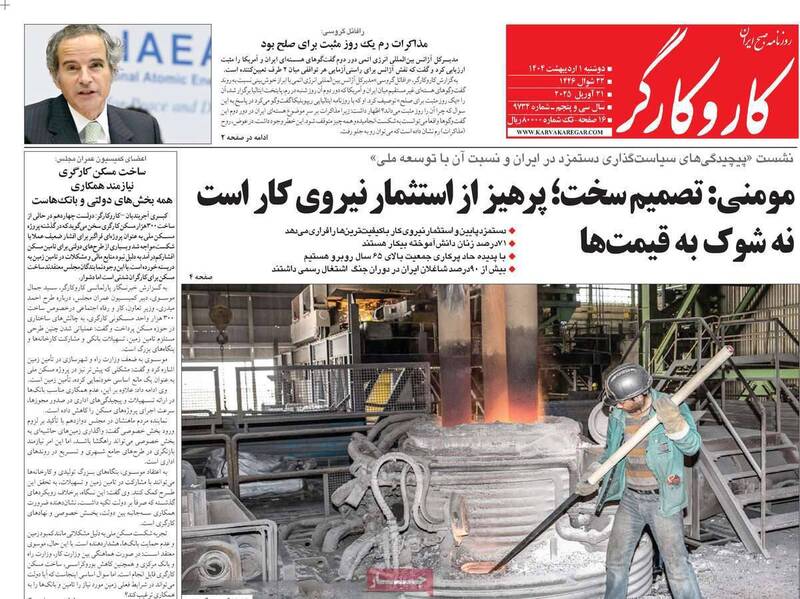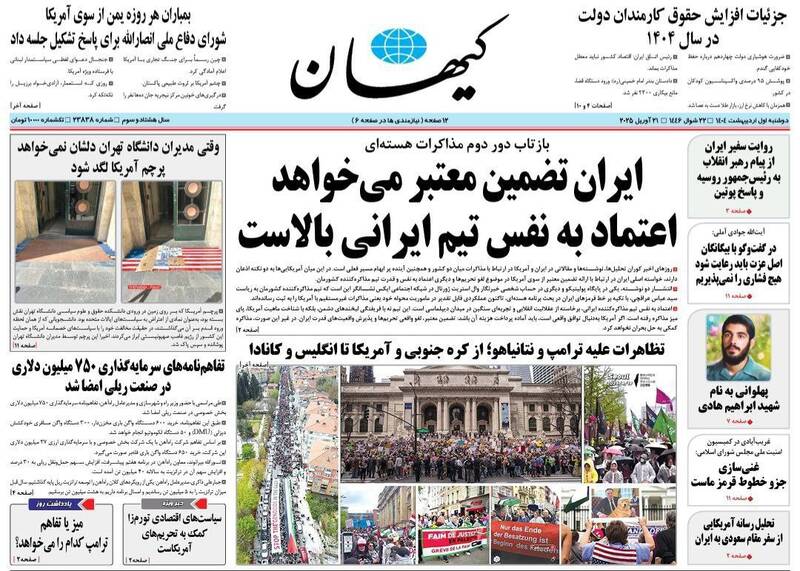 ایران تضمین معتبر میخواهد اعتماد به نفس تیم ایرانی بالاست، سوارهای تازه نفس، مک کارتیسم ترامپی، معمای اقای ب.ز، پرواز تا حماسه و…از جمله تیترهای روزنامههای دوشنبه ۱ اردیبهشت ۱۴۰۴ هستند.