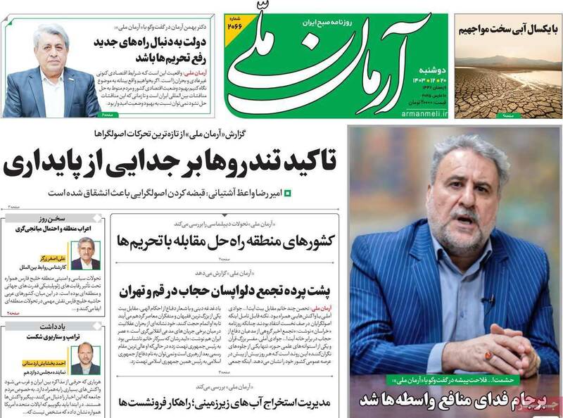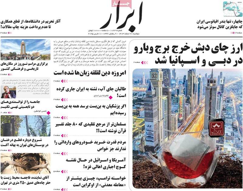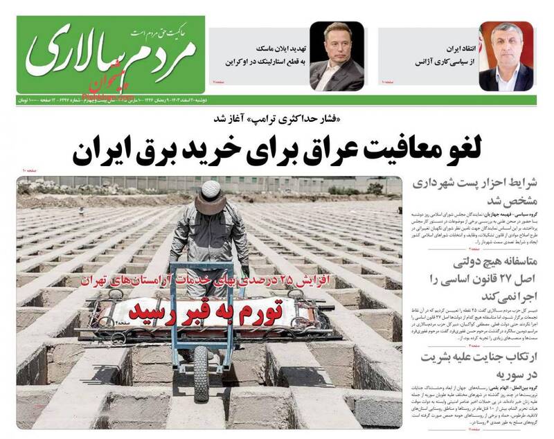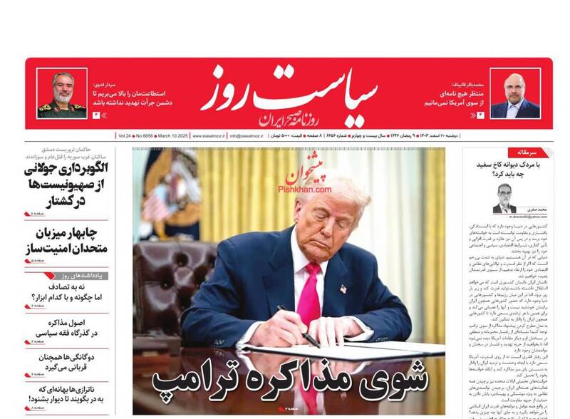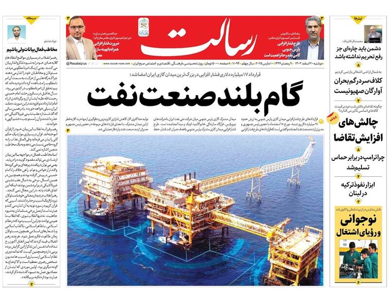 فهرست بلند قلدری‌های آمریکا و بدعهدی‌های اروپا، رمضان باید کانون ملی و مذهبی ایران باشد، رویای بن سلمان، دفاع مقدس از نمای نزدیک و… از جمله تیترهای روزنامه‌های دوشنبه ۲۰ اسفند ۱۴۰۳ هستند.