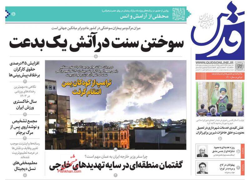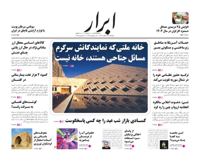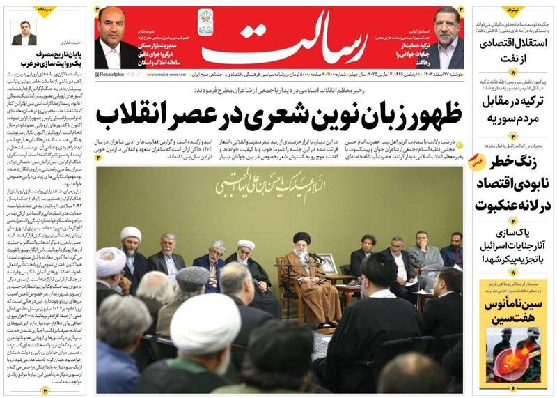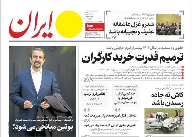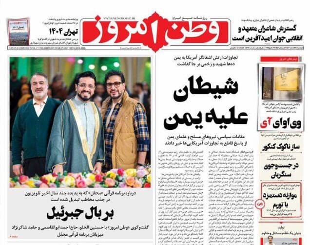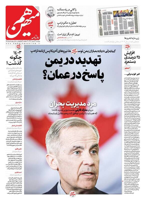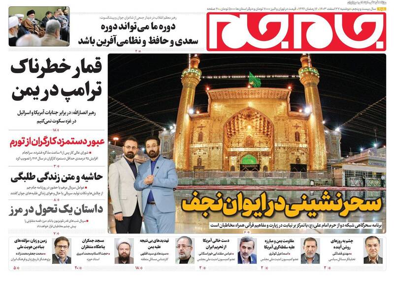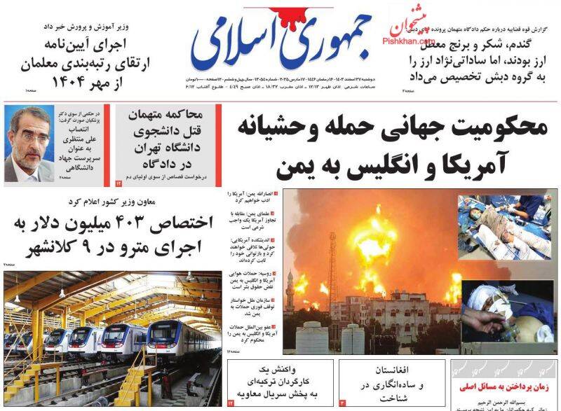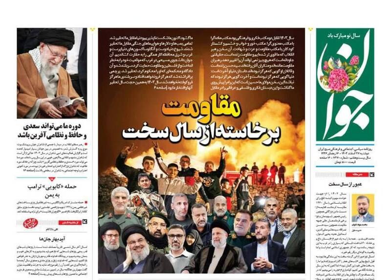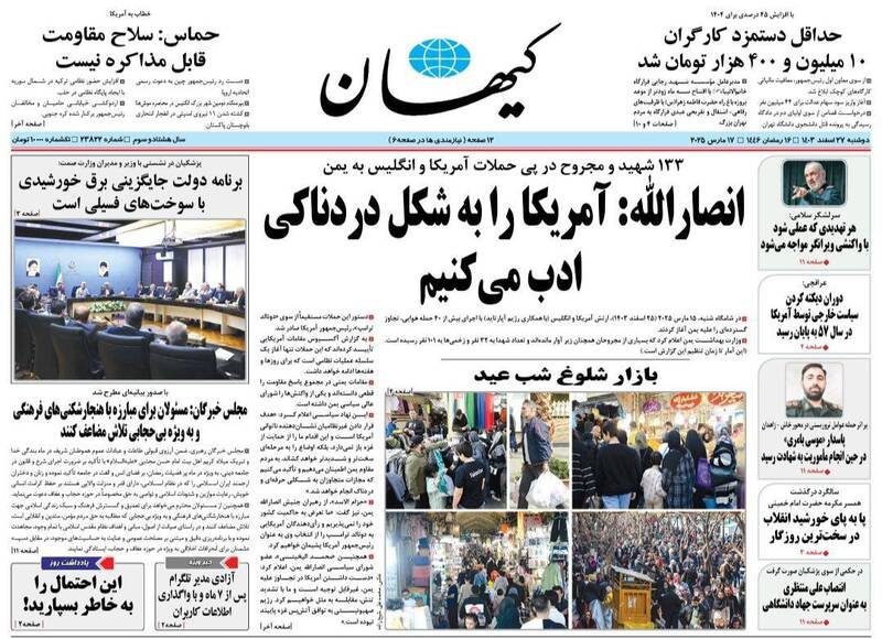 کارفرما شاکی کارگر ناراضی، انصارالله: آمریکا را به صورت دردناکی ادب می‌کنیم، مقاومت برخواسته از سال سخت، ظهور زبان نوین شعری در عصر انقلاب و… از جمله تیتر روزنامه‌های دوشنبه ۲۷ اسفند ۱۴۰۳ هستند.