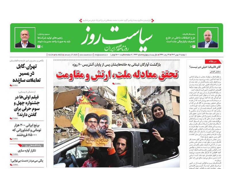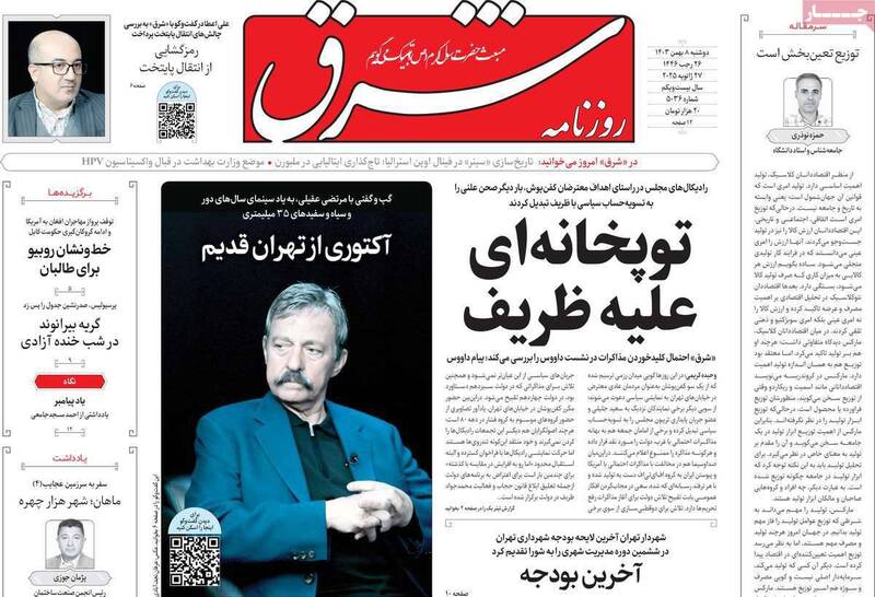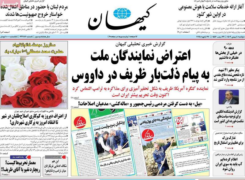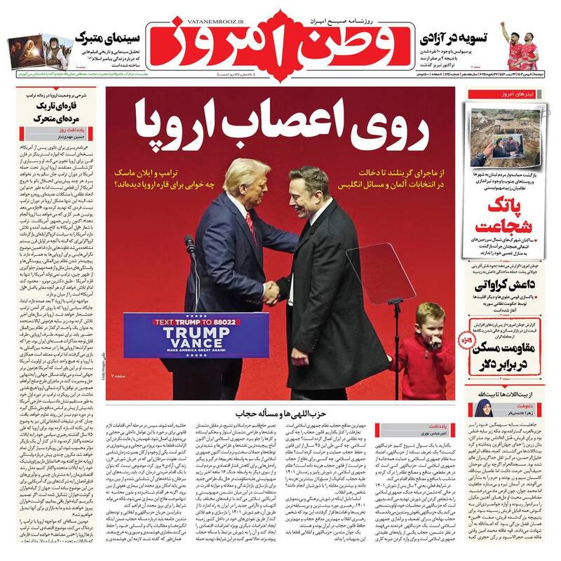 سناریو نویسی تندروها برای حذف ظریف، باور کنید سکه به نام محمد است، روی اعصاب اروپا، عصر جدید رمز ارزها و… تیتر برخی از روزنامههای دوشنبه ۸ بهمن ۱۴۰۳ است.