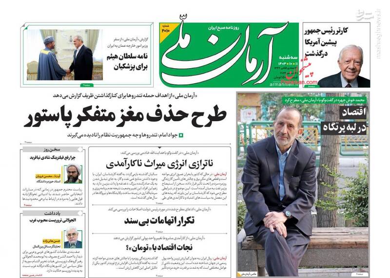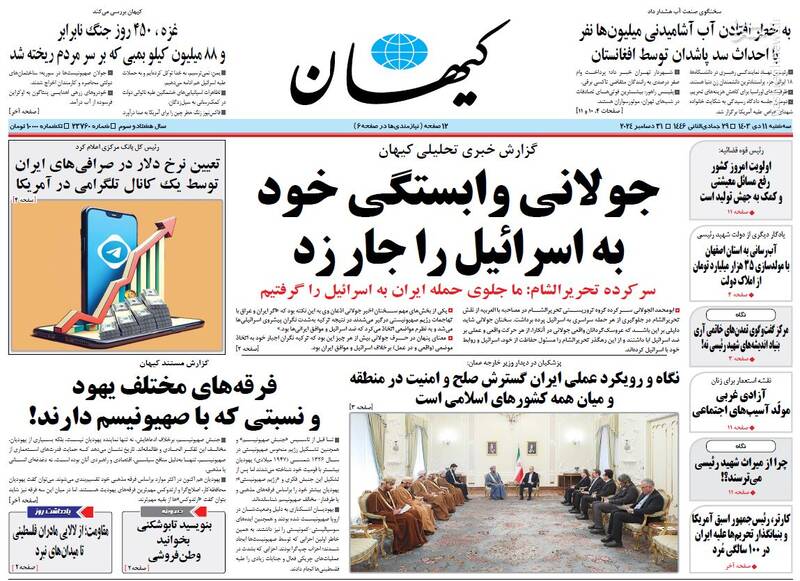 جولانی وابستگی خود به اسرائیل را جار زد، دلار؟! اسمش را هم نیار!، نرخ آمریکایی در سبزه میدان، رویکرد ایران گسترش صلح در منطقه، تیتر برخی از روزنامههای سهشنبه ۱۱ دی ۱۴۰۳ است.