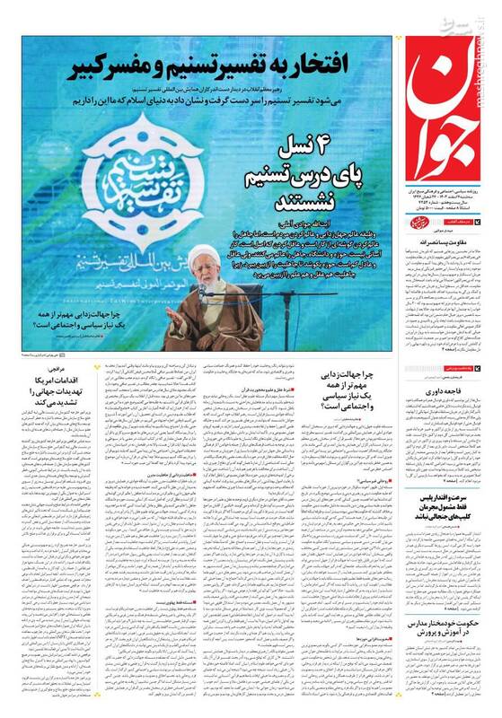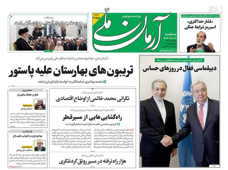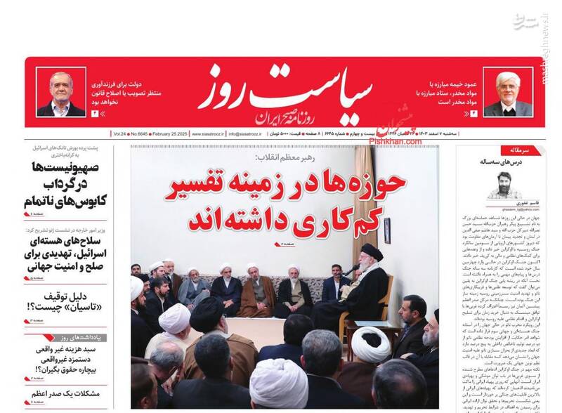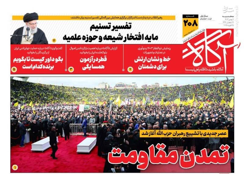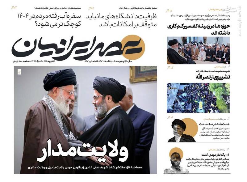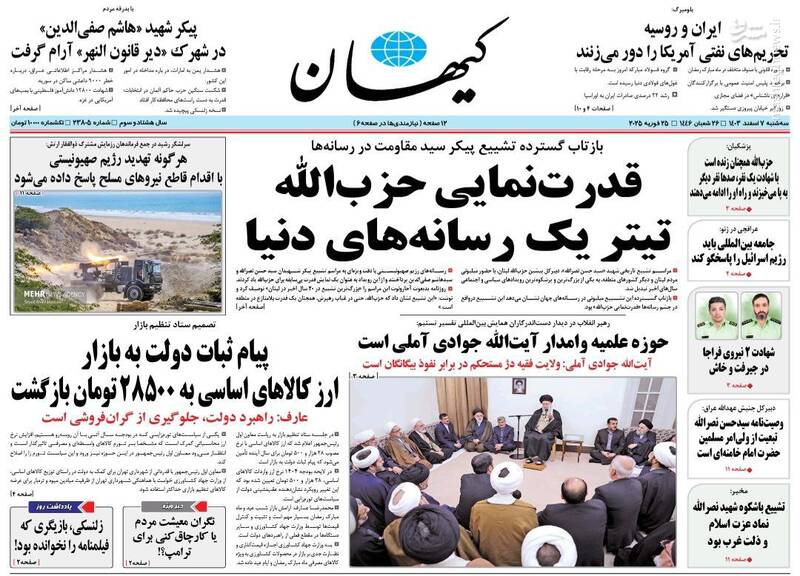 قدرتنمایی حزبالله تیتر یک رسانههای دنیا، برکات عمر استاد، اتمام حجت در حمایت از حزب الله، چشمه های معرفت، از جمله تیترهای روزنامههای سه شنبه ۷ اسفند ۱۴۰۳ هستند.
