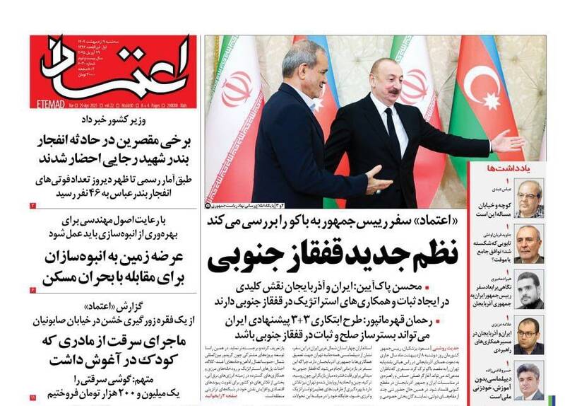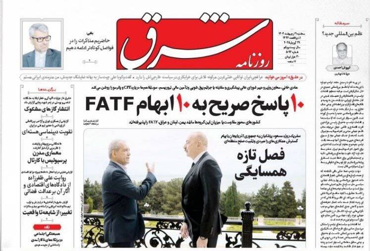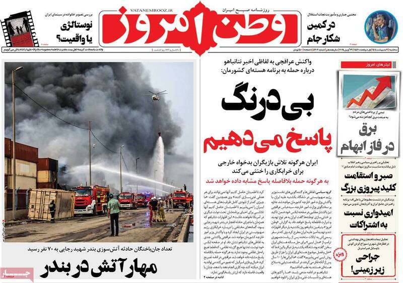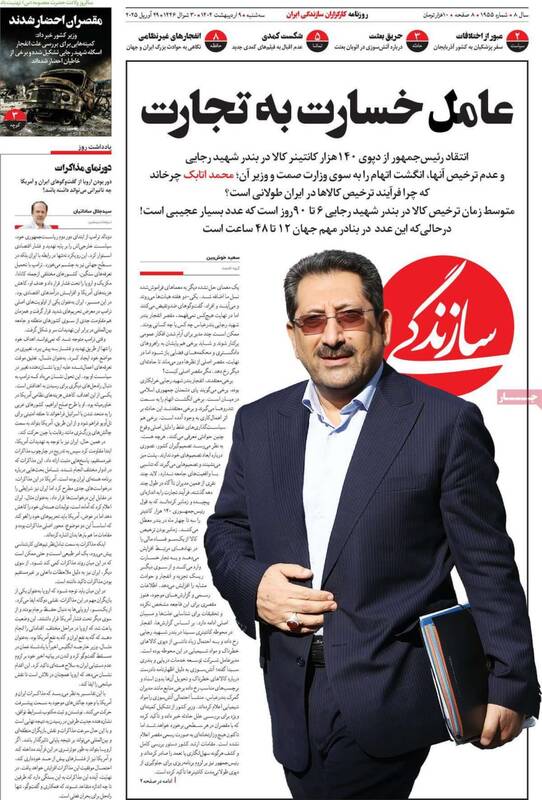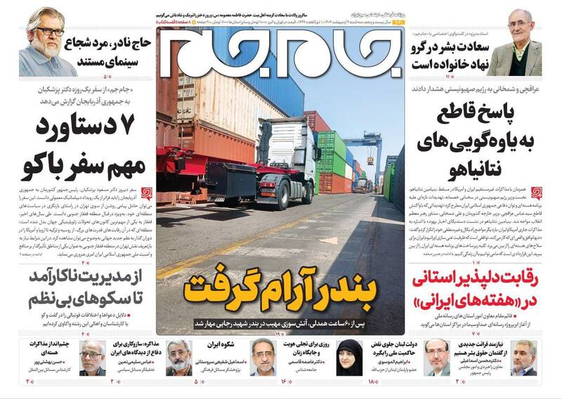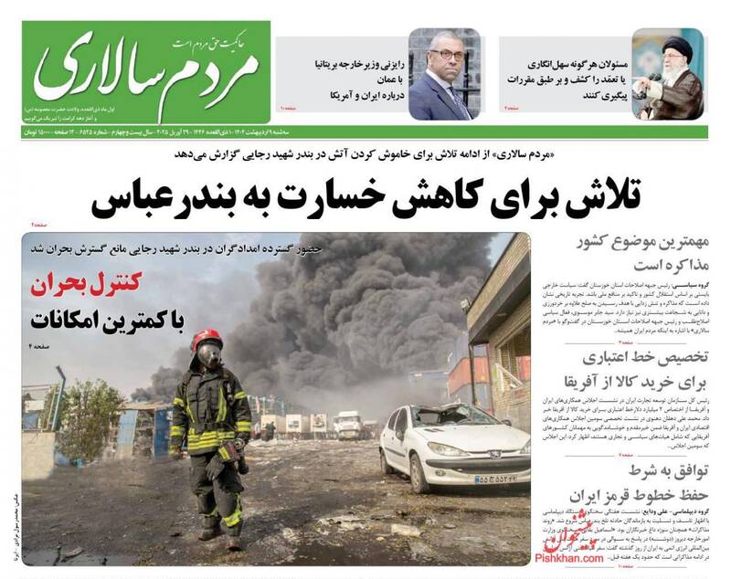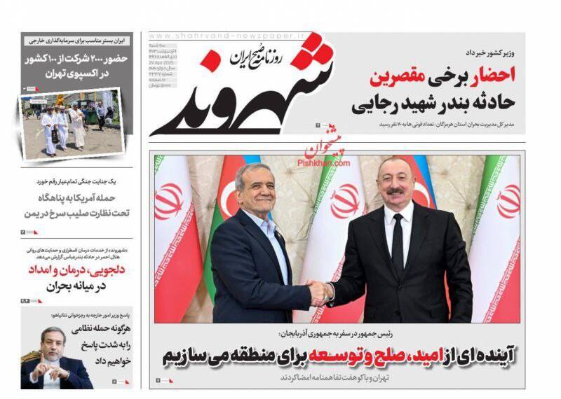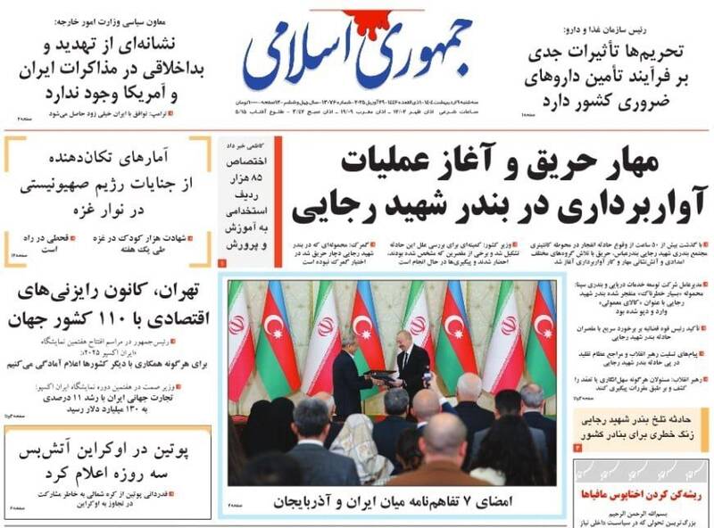 تقسیم کار آمریکا و اسرائیل مذاکره با ترامپ پارس کردن با نتانیاهو، باکو مثل تبریز، بی درنگ پاسخ میدهیم، همدلی اجتماعی در یک سوگ جمعی و…از جمله تیترهای روزنامههای سهشنبه ۹ اردیبهشت ۱۴۰۴ هستند.
