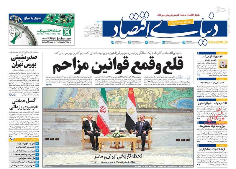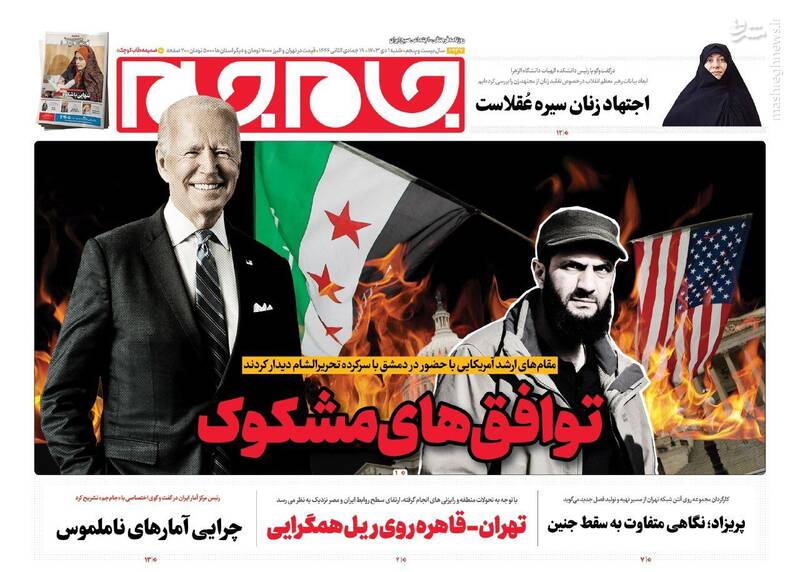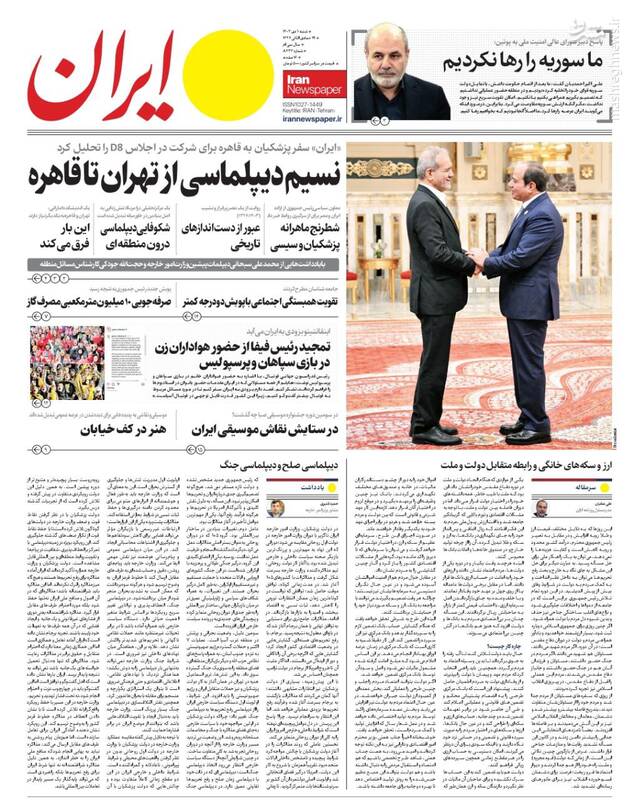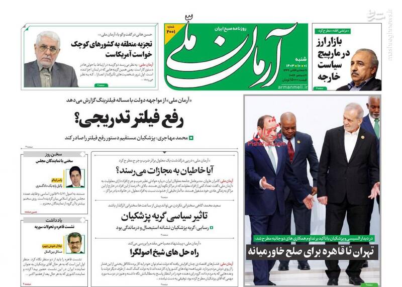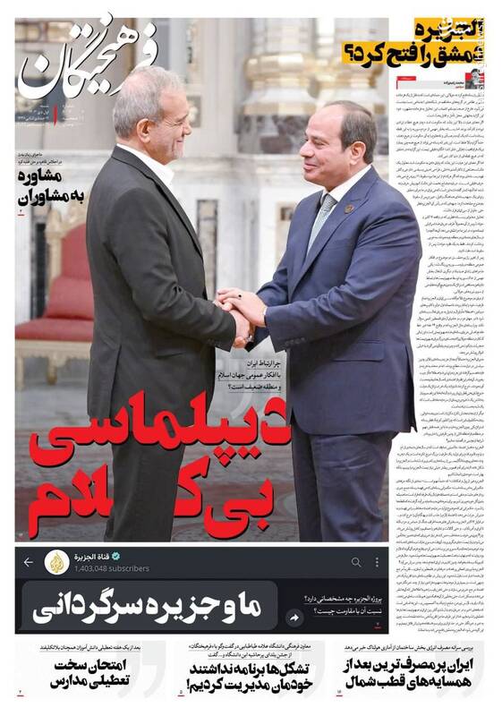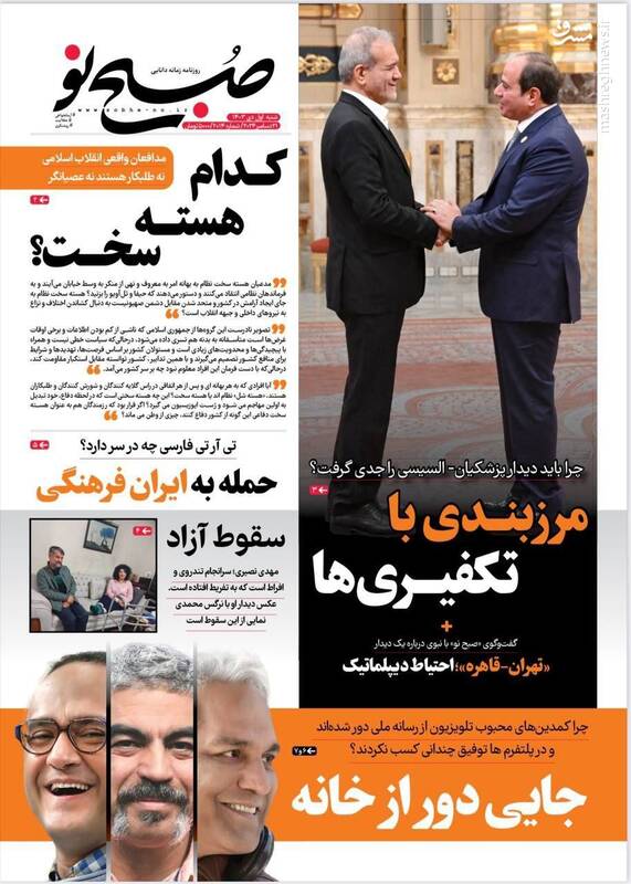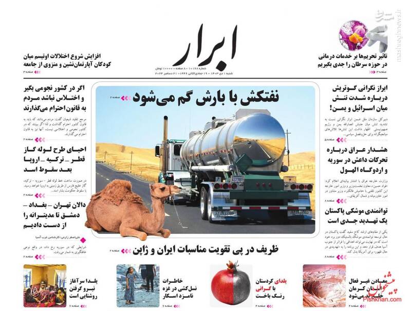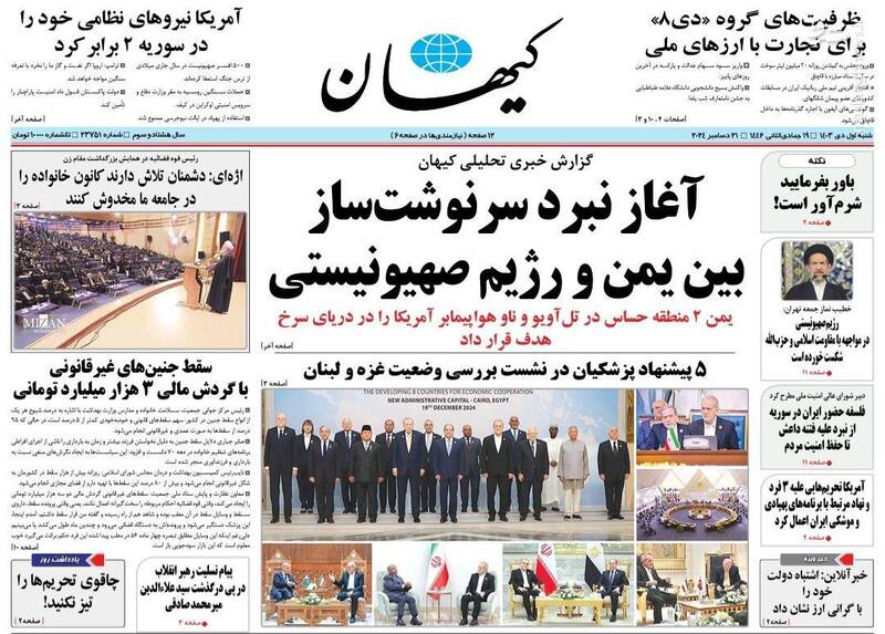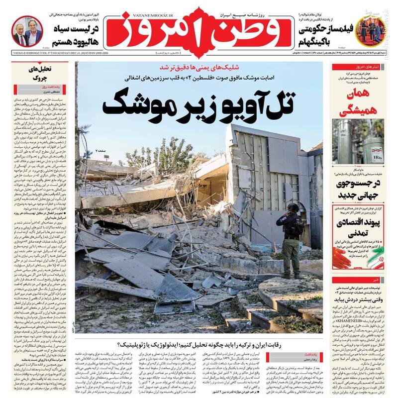 آغاز نبرد سرنوشتساز بین یمن و رژیم صهیونستی، دیپلماسی امریکایی با «تروریست ۱۰ میلیوندلاری»، تل آویو زیر موشک، تیتر برخی از روزنامههای شنبه اوآغاز نبرد سرنوشتساز بین یمن و رژیم صهیونستی، دیپلماسی امریکایی با «تروریست ۱۰ میلیوندلاری»، تل آویو زیر موشک، تیتر برخی از روزنامههای شنبه اول دی ماه ۱۴۰۳ است.