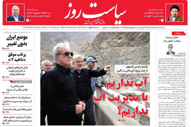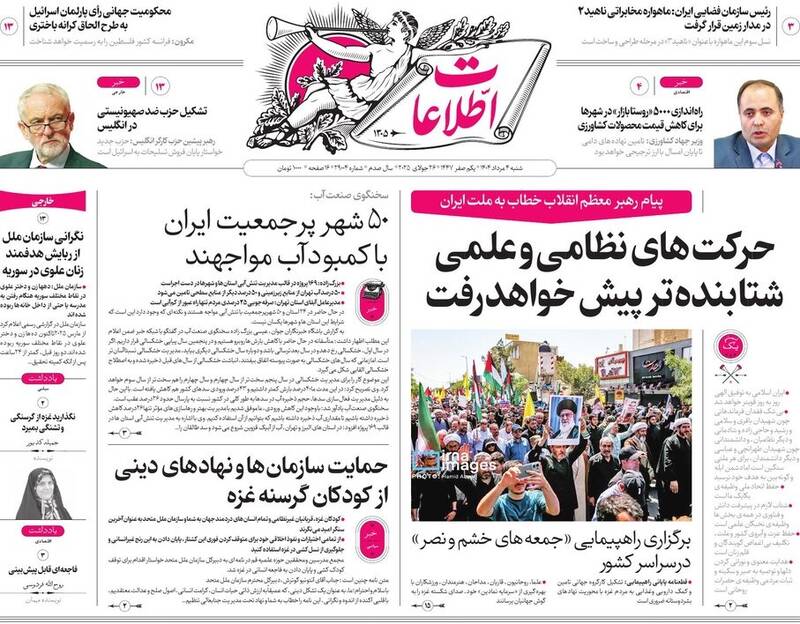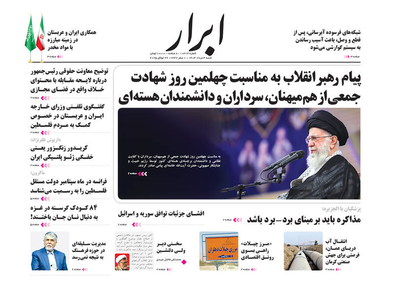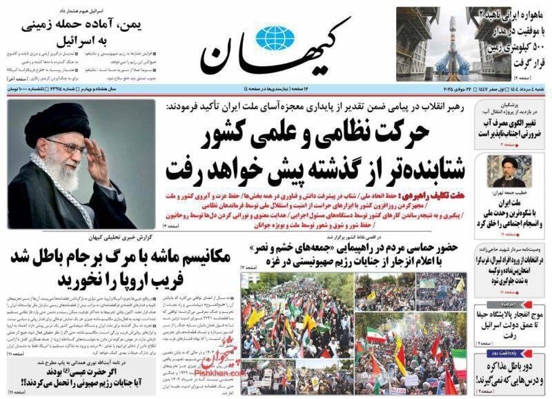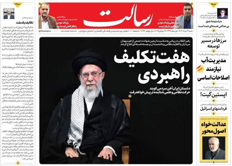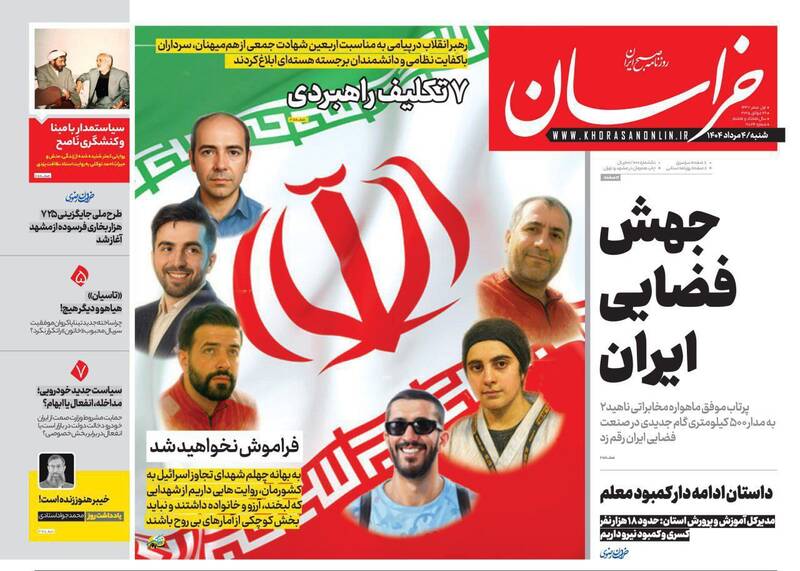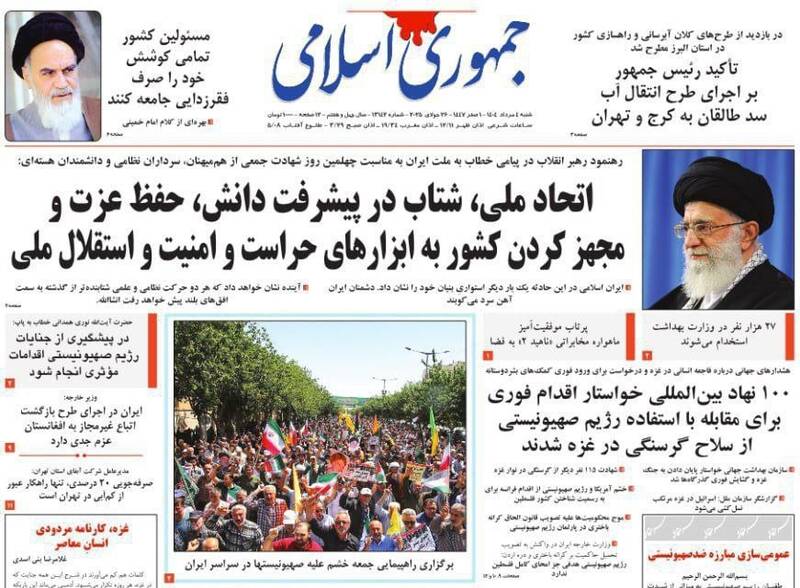 حرکت نظامی و علمی کشور شتابندهتر از گذشته پیش خواهد رفت، حفظ اتحاد ملی وظیفه یکایک ما است، هفتگانه راهبردی، ماموریت ایران و…از جمله تیترهای روزنامههای شنبه ۴ مرداد ۱۴۰۴ هستند.