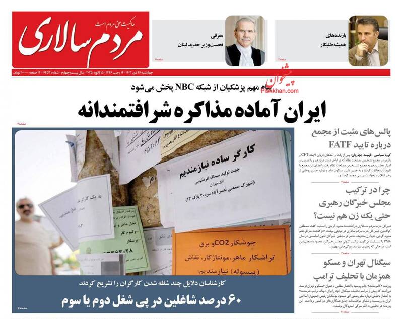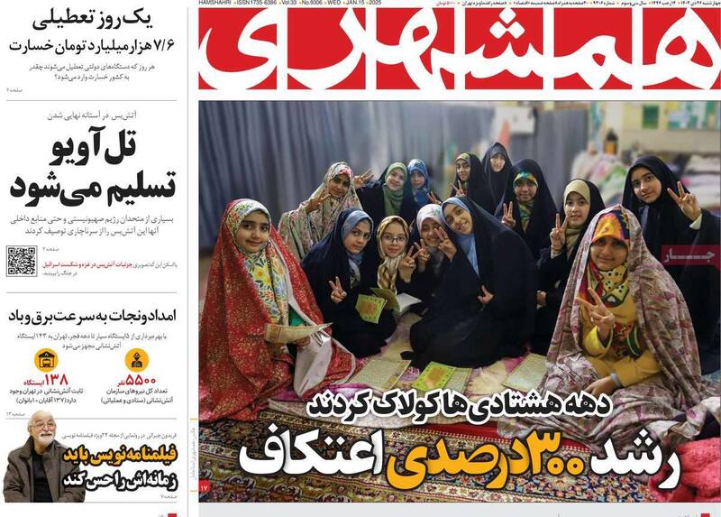 اعترافات ظریف را بخوانید خسارتهای برجام را تکرار نکنید، پتک حماس بر سر نتانیاهو، دست از پا درازتر، FATF هیاهو برای هیچ، جیغ رادیکالیسم و… تیتر برخی از روزنامههای چهارشنبه ۲۶ دی ماه ۱۴۰۳ است.