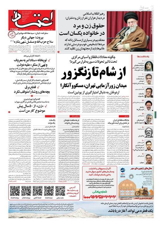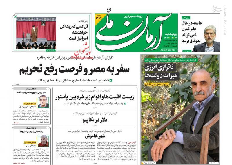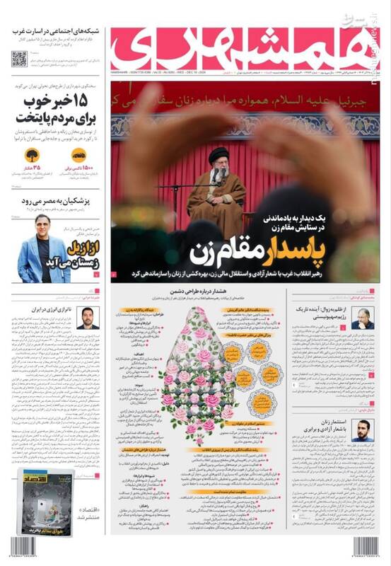 غزه و لبنان ایستادهاند /آن که ریشهکن میشود، اسرائیل است، رهبر انقلاب: معتقدم زنان در مسائل زنانه باید از مجتهد زن تقلید کنند، یک بیت عاشقانه، تیتر برخی از روزنامههای چهارشنبه ۲۸ آذرماه ۱۴۰۳ است.