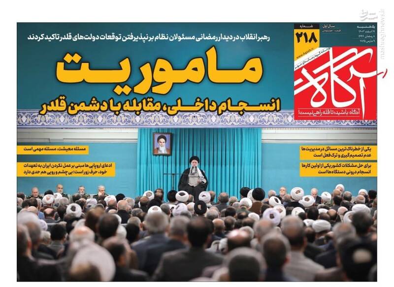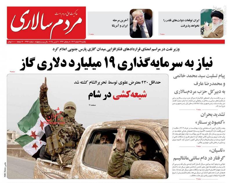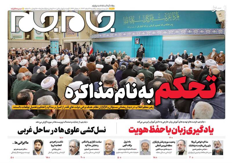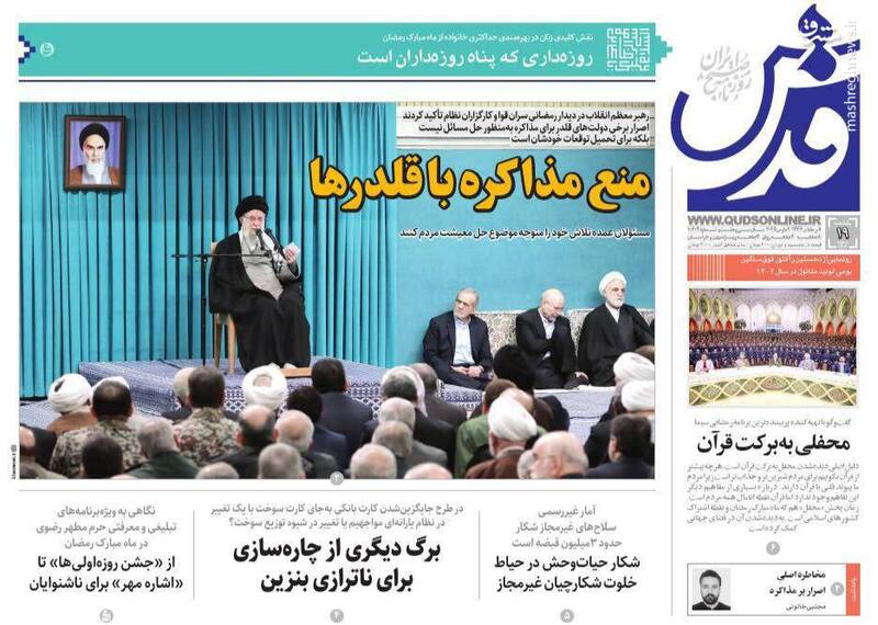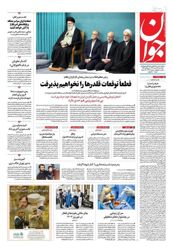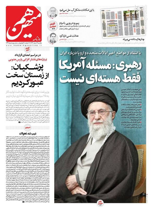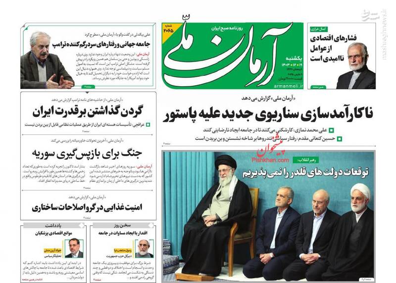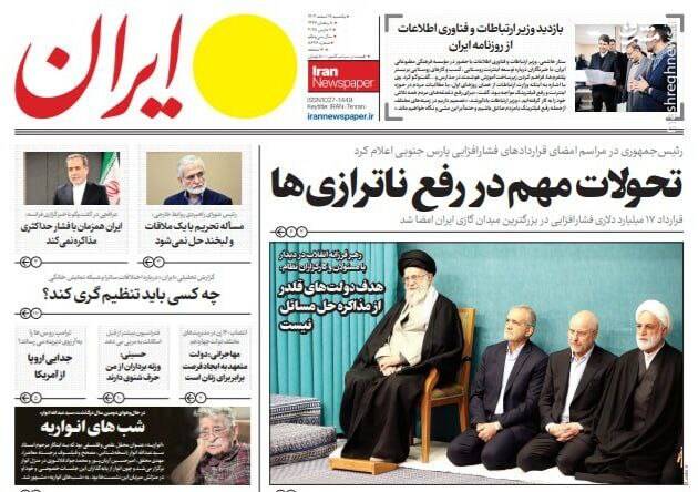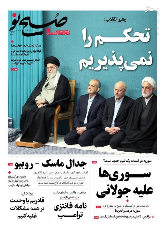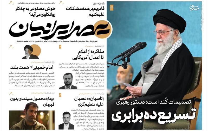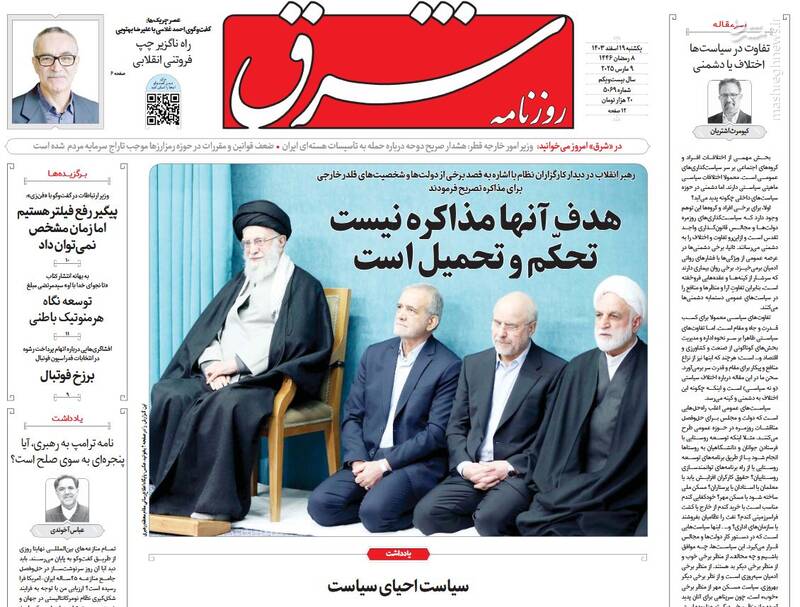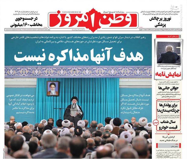 هدف از مذاکره حل مسئله نیست بلکه تحکم و تحمیل است، قطعاً توقعات قلدرها را نخواهیم پذیرفت، برگ دیگری از چارهسازی برای ناترازی بنزین، از جمله تیترهای روزنامههای یکشنبه ۱۹ اسفند ۱۴۰۳ هستند.