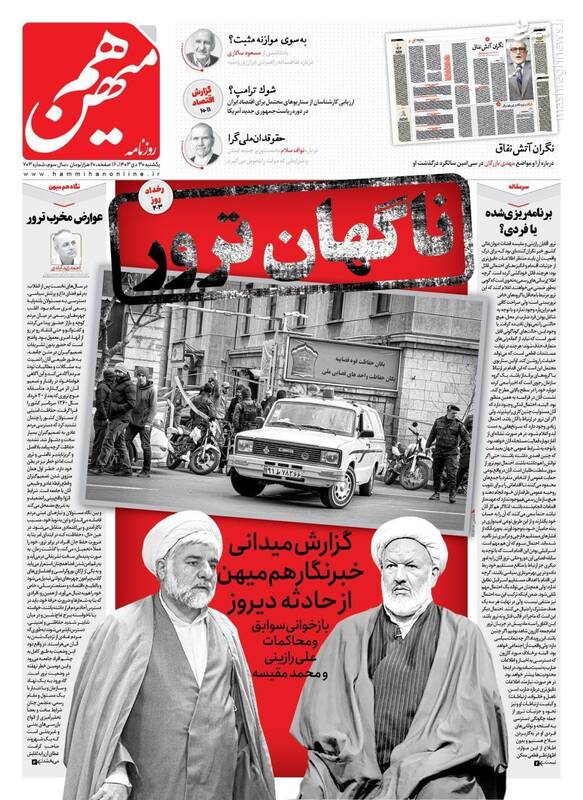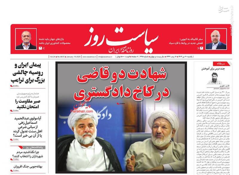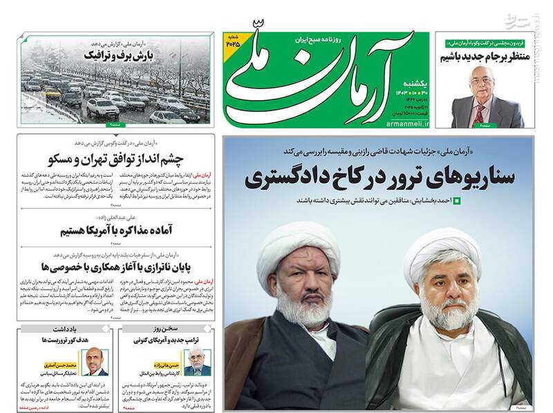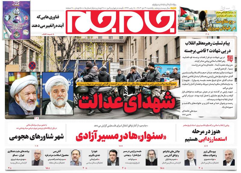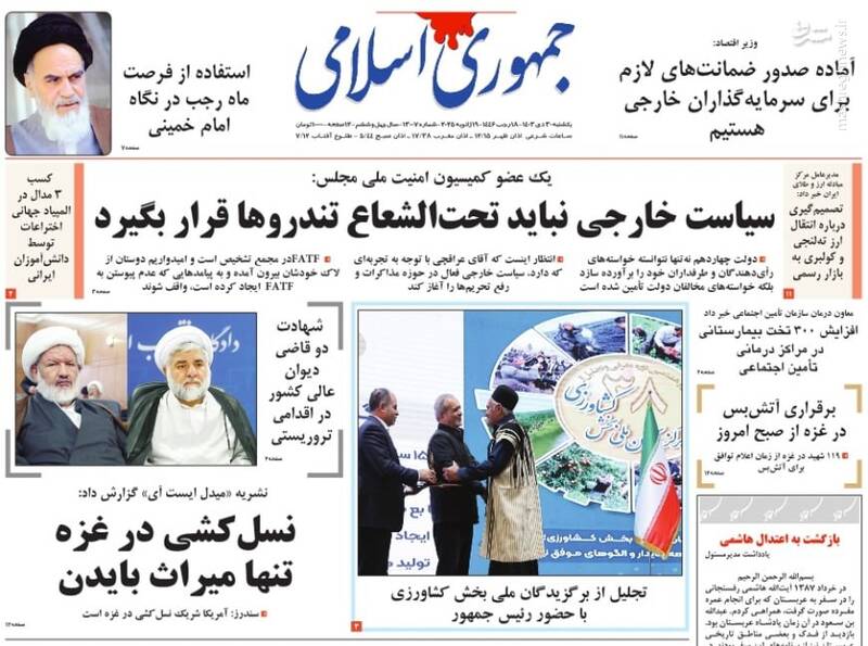 لیست بلند موفقیتهای دولت رئیسی بدون برجام، بدون FATF؛ مأموریت نمایندگان ترامپی، نفوذ و نفاق برای ناامن سازی، تیتر برخی از روزنامههای یکشنبه ۳۰ دی ۱۴۰۳ است.