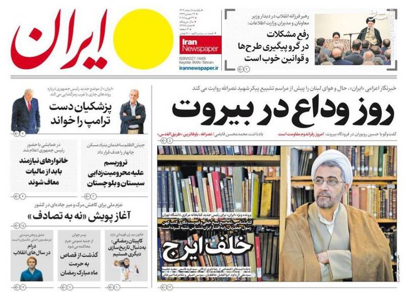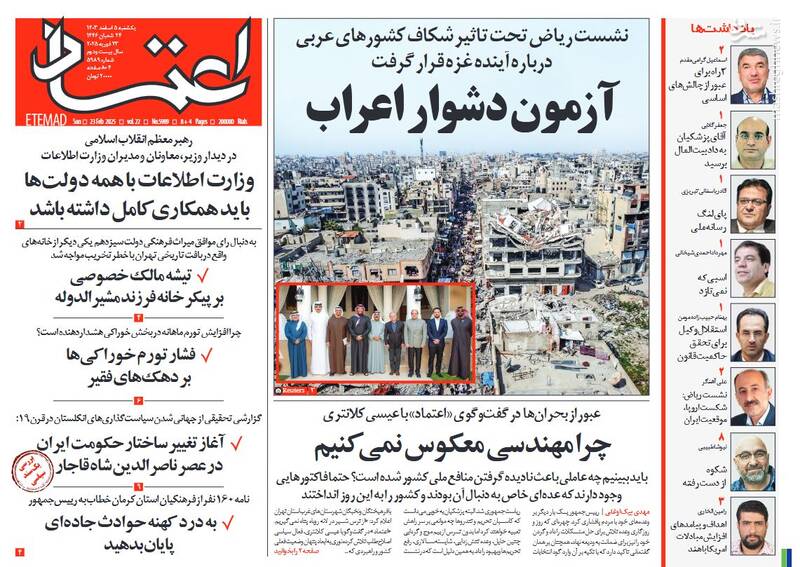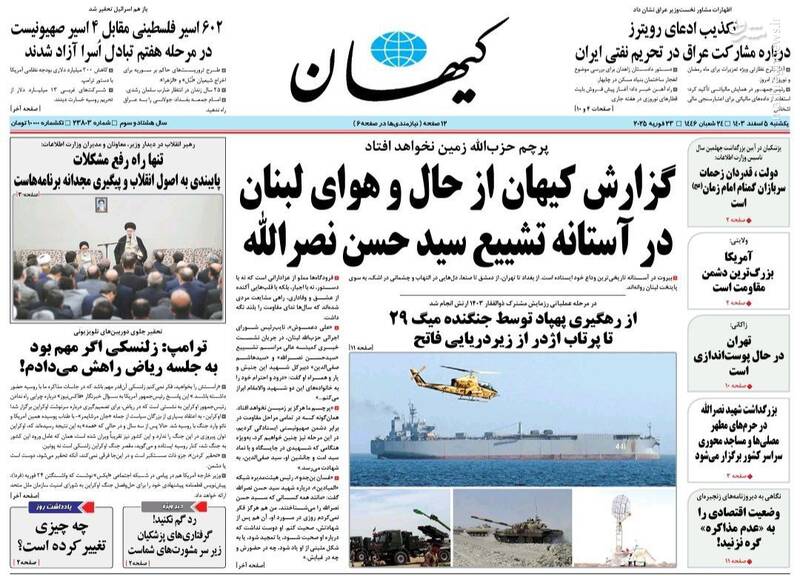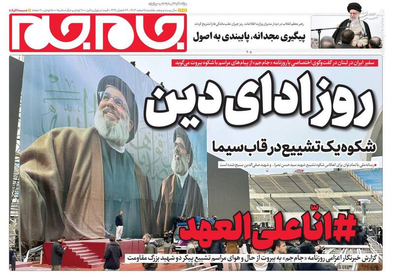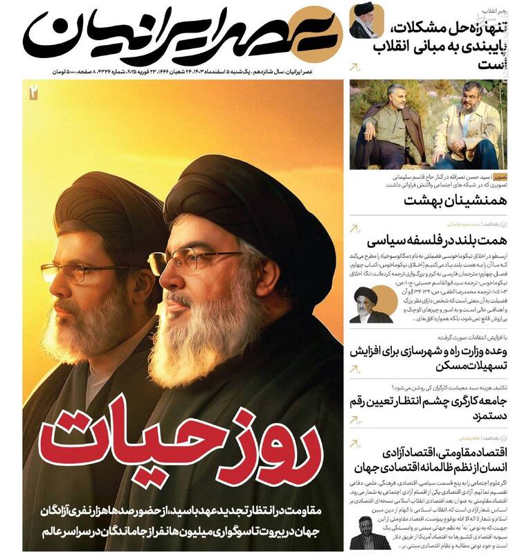 روز طوفان مردمی حزبالله، تنها راه رفع مشکلات پایبندی به اصول انقلاب و پیگیری مجدانه برنامههاست، روز ادای دین، از جمله تیترهای روزنامههای یکشنبه ۵ اسفند ۱۴۰۳ هستند.