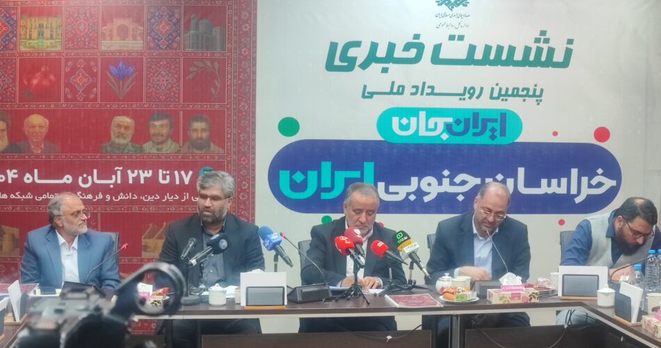 نشست خبری پنجمین رویداد ملی «ایران‌جان» شام گاه روز دوشنبه با حضور سید محمدرضا هاشمی استاندار خراسان جنوبی، علیرضا کیخا رئیس مرکز استان‌های صداوسیما، علیرضا آیینه‌دار مدیرکل صداوسیمای خراسان جنوبی و حسین قرایی مدیرکل روابط عمومی رسانه ملی برگزار شد.